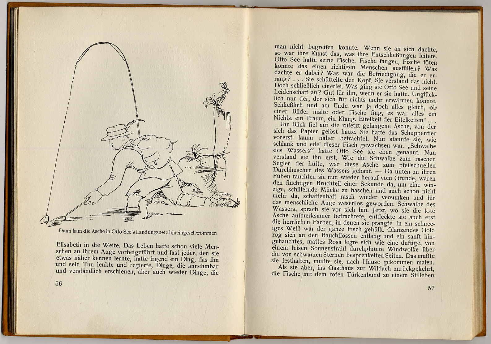 Rummel, Walter v.: Das Fischerlehen. Roman. München, Fischereisport-Verl. Dr. Hanns Schindler, [1930]. Ca. 19,5 x 13,5 cm. 156 S., (4) Seiten. Mit 21 Zeichnungen. Orig.-Pappband. Einband leicht berieben und minimal fleckig, jedoch gutes Exemplar.