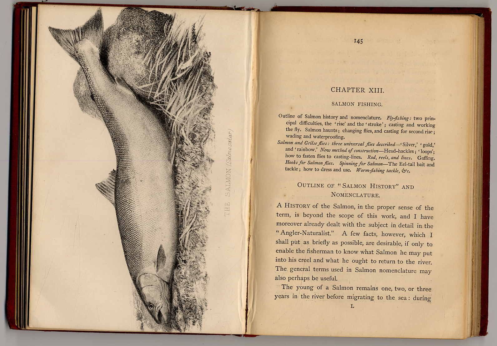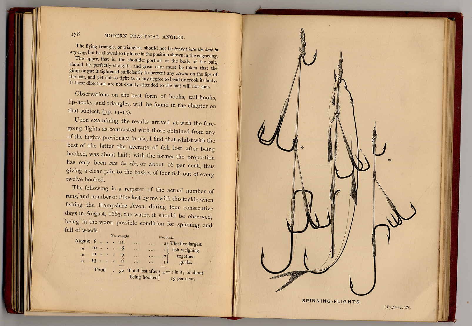 Cholmondeley-Pennell, H[enry]: The modern practical angler. A complete guide to fly-fishing, bottom-fishing, & trolling. London, Frederich Warne and Co., 1870. Ca. 18,5 x 13 cm. XVI S., 286 S., (2) Seiten. Mit 50 Illustrationen im Text und auf Tafeln, davon 1 farbige Tafel mit Kunstködern. Roter Orig.-Leinenband. Erste Ausgabe. Einband leicht fleckig, Rücken bestoßen und am oberen Kapital mit kleineren Einrissen. Vorstz etwas gelockert. Mit dekorativen, teils ganzseitigen Illustrationen. In englischer Sprache.
