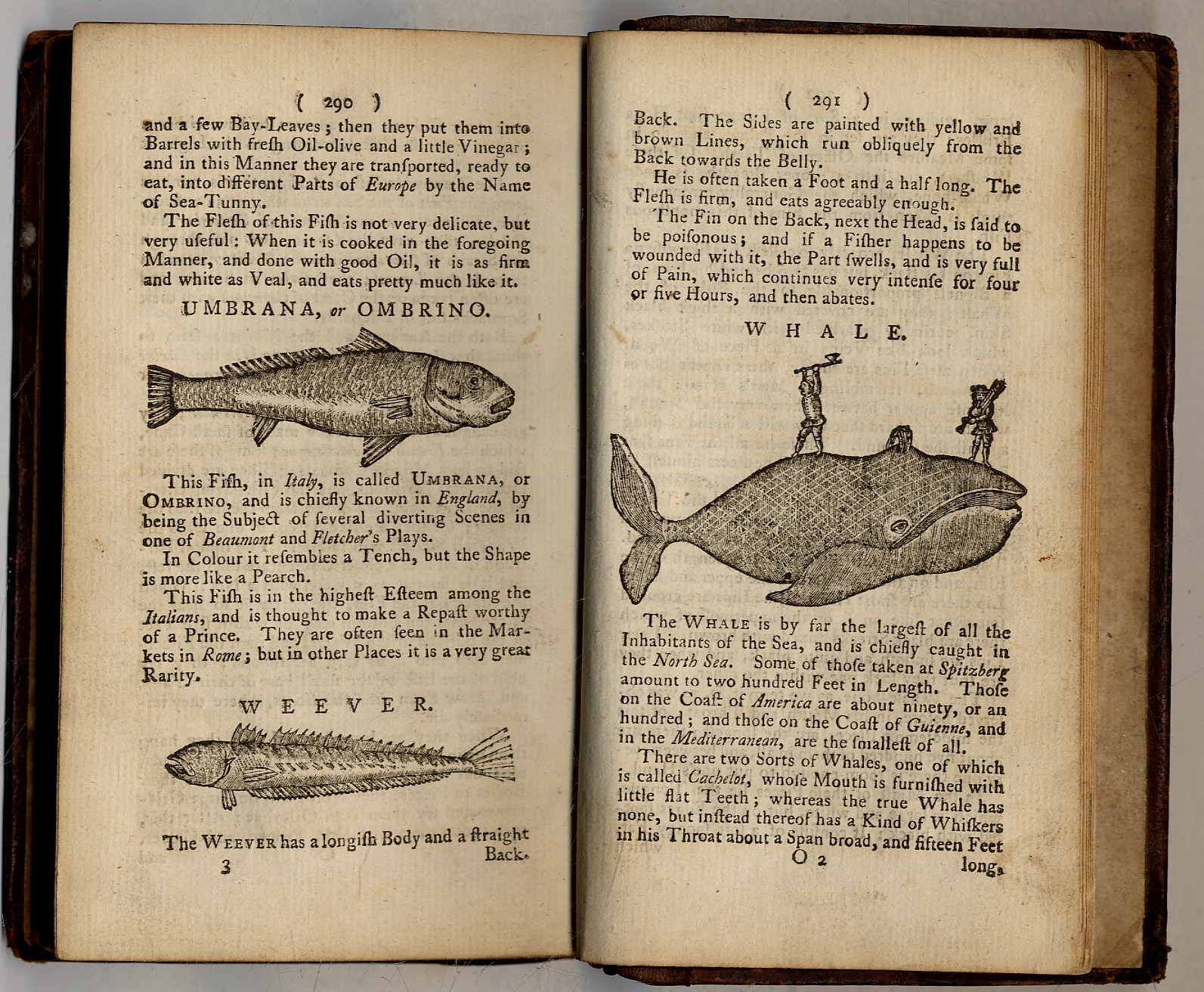 Brookes, R[ichard]: The art of angling. The fifth edition, with great Improvements. London, T. Lowndes, 1781. Ca. 18 x 11 cm. VIII S., 303 S., (1) Seite. Mit 135 Textholzschnitten und einem dekorativen Kupferstich-Frontispiz. Ledereinband der Zeit mit goldgeprägtem Rückentitel. Westwood/Satchell S. 42. Rücken Leder fachmännisch und sauber erneuert. Vorsätze etwas fleckig. Seiten teils etwas stock- bzw. leicht fingerfleckig. Eingeteilt in 2 Teile: Part I: Containing an Account of Fish, and Fish-Ponds: a new Art of Fly-making … The secret Ways of catching Fish by Ointments, Pastes, and other Arts …; Part II: Of the great Whale and Whale Fishery; the devouring Shark, the amphibious Turtle … In englischer Sprache.