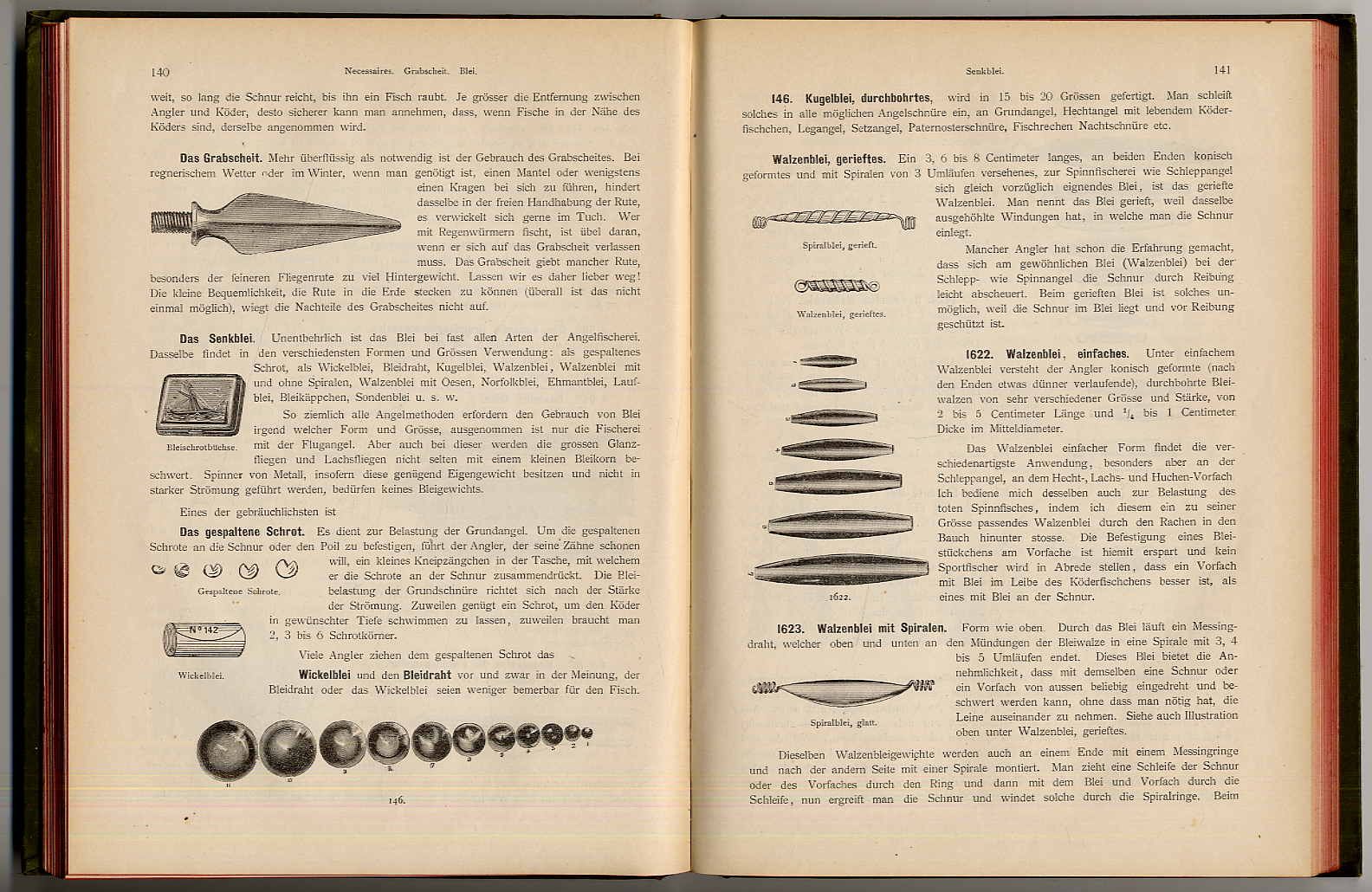 Angelsport – Stork, H[ermann]: Der Angelsport. Das Wissenswerteste aus demselben nebst Anleitungen zum Gebrauch der Angelgeräte sowie Beschreibung der verschiedensten Angelmethoden besonders der Flugangel, der Grundangel, der Spinnangel und der Schleppangel. Als Anhang: Angler-Fahrten. Dr. Victor von Scheffel als Angler. Diverse Erlebnisse auf Angelexkursionen u.s.w. In 10 Erzählungen. München, Selbstverlag des Verfassers, o.J., um 1895. Ca. 26,5 x 20 cm. III S., 307 S., VI S. Mit über 1.000 Abbildungen. Illustlrierter grüner Orig.-Leinenband. Mit Exlibris. Deckeltitel: „Der Angelsport. Freunden des Angelsports ein gewissenhafter Ratgeber.“ U.a.: Angelruten, Haspel, Rollen, Winden, Angelschnüre, Vorfächer, Angeln, das Floss, die künstlichen Fliegen, Metallspinner, Gummispinner, Angelnecessairs, Senkblei, Wirbel, Seidenwurmdarm, Wurm- und Insektenbehälter, Fischtransportkessel, Fischnetze, Fischzucht und Madenerzeugungsapparat, Angelmethoden, Fang der Forelle, Fang der Seeforelle, des Huchens, des Lachs, des Saibling, der Aesche, Fang des Hechtes, des Zander, Fang von Friedfischen, des Barsches, der Barbe, des Karpfens, des Aitels, des Aals, des Wallers, des Krebses. Anglerfahrten, u.a. Victor von Scheffel als Angler; Französische Angler. Gutes Exemplar.