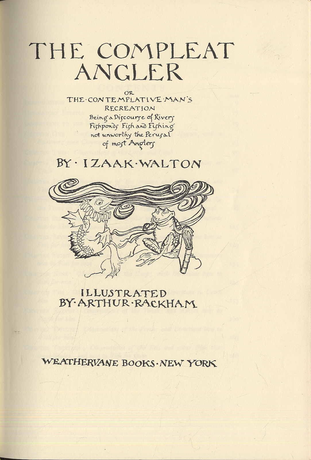Walton, Isaac: The complete angler. Or the contemplative man’s recreation being a discourse of rivers, fish-ponds, fish, and fishing not unworthy the perosal of most angler. New York, Weathervane Books, o.J., um 1980. Ca. 28,5 x 18,5 cm. 223 Seiten. Mit Textillustrationen und 12 Farbtafeln von Arthur Rackham. Halblederband mit goldgeprägtem Rückentitel. In englischer Sprache. Nicht datierte Ausgabe in hübschem Halbledereinband. Mit den reizvollen Rackham-Illustrationen.