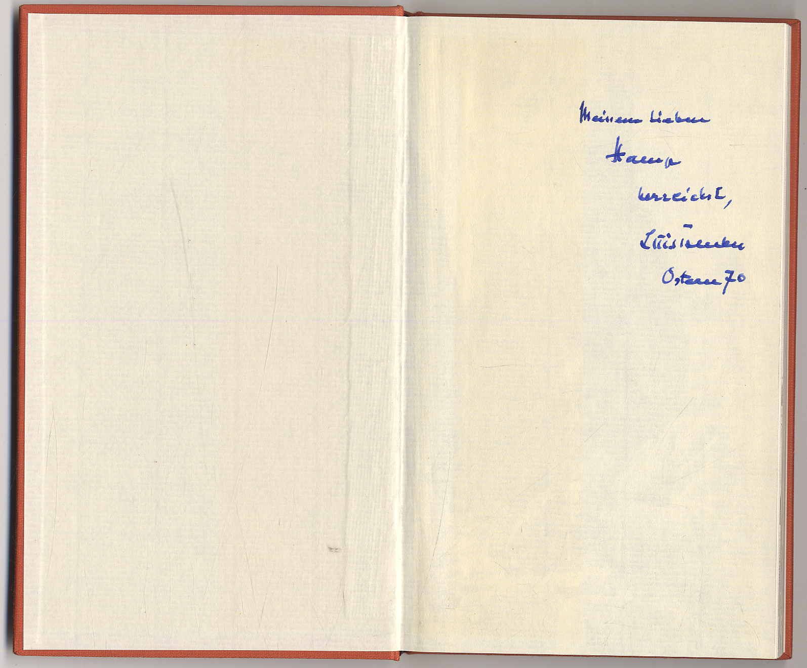 Trenker, Luis: Luis Trenker erzählt aus seinem Leben. München u.a., Bechtle Verlag, 1970. Ca. 21,5 x 13,5 cm. 77 S., (3) Seiten. Mit Abbildungen auf Tafeln. Brauner Orig.-Leinenband mit Schutzumschlag (dieser mit Randeinrissen). Mit eigenhändiger Widmung von Luis Trenker (Bergsteiger, Regisseur und Schriftsteller, 1892-1990) auf Vorsatz, datiert „Ostern 70“.