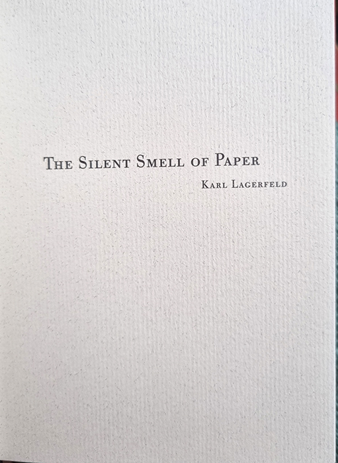 Lagerfeld – Paper Passion Perfume. Göttiingen, Steidl, 2012. Ca. 16 x 12,5 cm. (24) Seiten, mit gefülltem Parfüm-Flakon. Weißer Original-Leinenband. „Paper Passion Perfume fängt den einzigartigen Duft frischgedruckter Bücher ein. Entwickelt von Geza Schön in enger Zusammenarbeit mit Gerhard Steidl und dem Wallpaper* Magazine erinnert das Parfüm an die besondere Geruchsmischung von Papier und Tinte … Geza Schön ließ sich in der Steidl Druckerei inspirieren, nahm unzählige Papiermuster zur Hand und roch immer wieder an Druckerfarbe – alles um einen Duft zu entwickeln, der dem Papier gerecht wird, dem Menschen schmeichelt und mit dem Verstreichen der Zeit nicht an Wert verliert, sondern reift wie ein gutes Buch. Siebzehn Anläufe brauchte es bis zur Perfektion: der ausgewogenen Mischung aus Papier und Parfüm-Ästhetik. Die raffinierte Verpackung von Paper Passion Perfume gestaltete Karl Lagerfeld …“ (Steidl Verlag). Die Texte (überwiegend in Englisch) auf den ersten Seiten von Günter Grass, Karl Lagerfeld, Geza Schön und Tomy Chambers. Einband minimal angestaubt, jedoch gutes Exemplar. Der Parfümflakon „versteckt“ sich hinter einer großen Anzahl roter Blätter mit der dem Flakon angepassten Aussparungen.