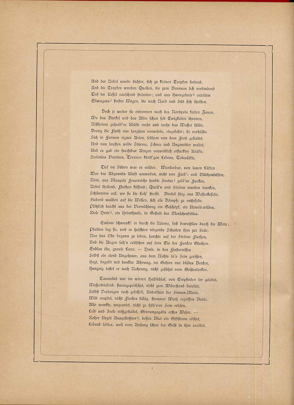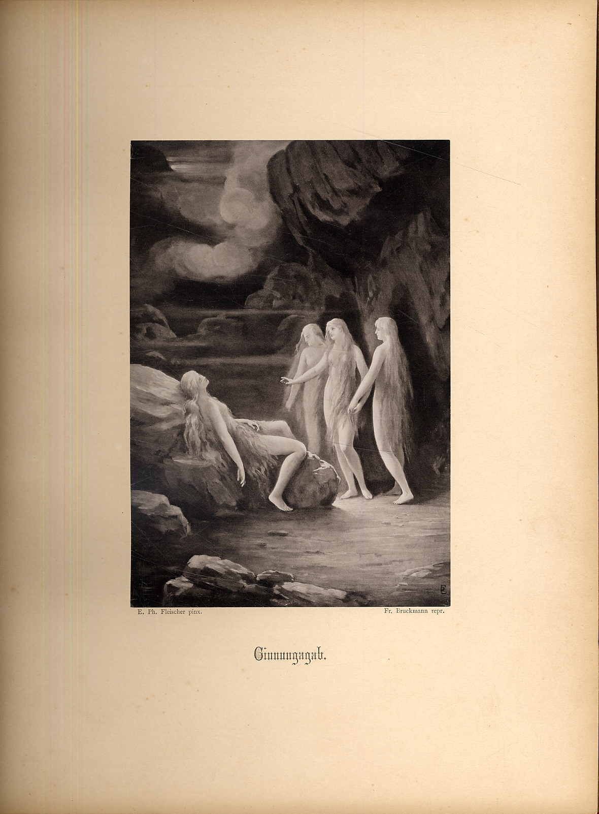 Kayser-Langerhannß, A[gnes]: Odin. Nordisch-germanische Göttersage. München, Friedr. Bruckmann, 1881. Ca. 35,5 x 28 cm. (4) S., 170 S., (2) Seiten. Mit 12 montierten Illustrationen in Lichtdruck und zahlreichen Vignetten. Roter Orig.-Leinenband mit reicher Gold- und Schwarzprägung. Goldschnitt. Pataky: Lexikon deutscher Frauen der Feder I, S. 415. Original-Ausgabe im Prachteinband. Einband leicht bestoßen und etwas fleckig. Mit Exlibris.