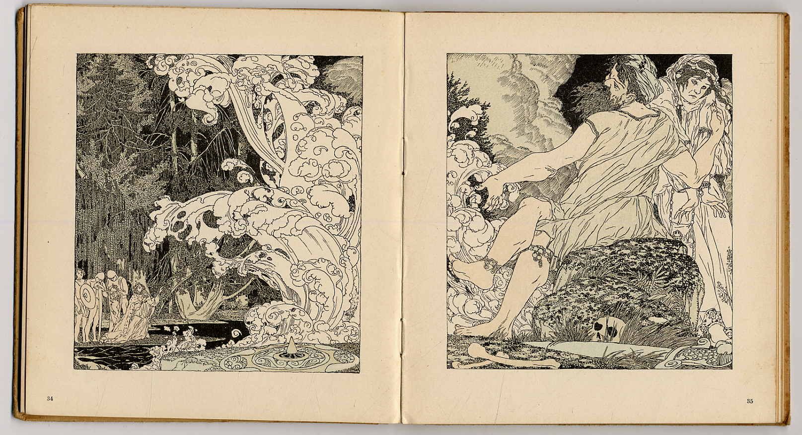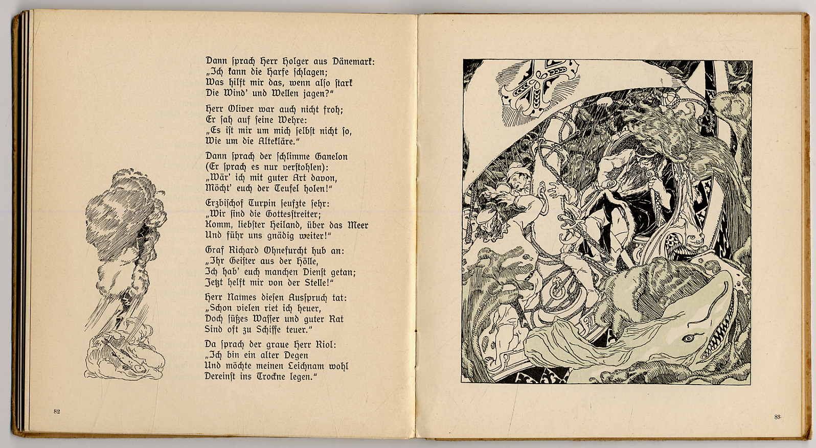 Uhland, Ludwig: Gedichte. Text gesichtet von Hans Fraungruber. Wien und Leipzig, Gerlach & Wiedling, 1911. Ca. 15 x 14 cm. 105 S., (3) Seiten. Mit teils ganzseitigen Illustrationen von Ferdinand Staeger. Illustr. Original-Halbleinenband. Aus der Reihe: Gerlachs Jugendbücherei, Band 27. Verlagssignet GW. Heller: Die bunte Welt 127R A: „Die Flächen dieser Zeichnungen sind freilich sehr oft dicht gefüllt … stehen in wirksamer Plastizität und Raumtiefe …“. Vorsatz „Mauskäfer“: „Die Bezeichnung „Mauskäfer“ habe ich 1981 eingeführt … obwohl sie auf einer Bild-Mißinterpretation beruht: es handelt sich zweifellos um ein Chamäleon. Doch sollte, um neuerliche Verwirrung auszuschließen, der Mauskäfer weiter sein Leben fristen.“ (Friedrich C. Heller: Die bunte Welt, S. 116). Einband leicht fleckig, Namenszug und Nummer auf Titelblatt.