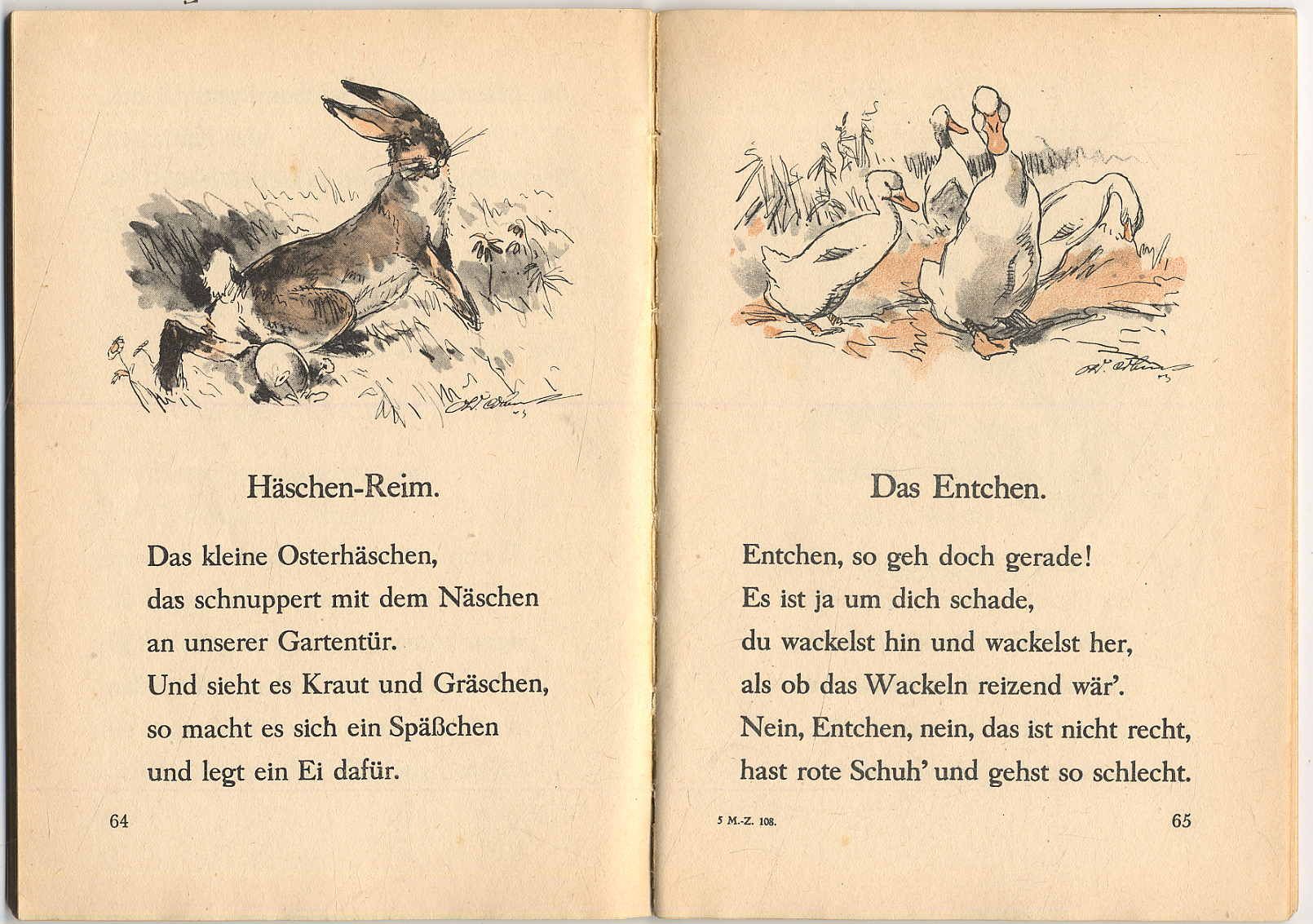 Mein erstes Lesebuch. Lehrbuch für den zweiten aufsteigenden Jahrgang der tschechischen Volksschulen. Schulverlagsanstalt für Böhmen und Mähren, 1943. Ca. 21 x 14,5 cm. 96 Seiten. Mit farbigen Bildern von O. Cihelka. Farbig illustr. Orig.-Halbleinenband. Die Fibel beginnt mit „Bilder zu den Selbstlauten“ und „Bilder zu den Mitlauten“. Schwungvoll illustrierte Fibel. Lesebuch für das von den Deutschen errichtete Protektorat Böhmen und Mähren in der Tschechoslowakei mit nur geringem politischen Bezug (″Der Führer hat Geburtstag“). Die Fotografie Hitler mit einem Kind auf den Obersalzberg wurde entfernt, Sonst gutes Exemplar der seltenen Ausgabe. Auf der Rückseite des Titelblattes der Vermerk „Dieses Buch enthält einen Gutschein“. Dieser war üblicherweise eingeklebt und wurde – wie auch bei unserem Exemplar – entfernt; man erhielt für 10 Gutscheine eine Fibel gratis.