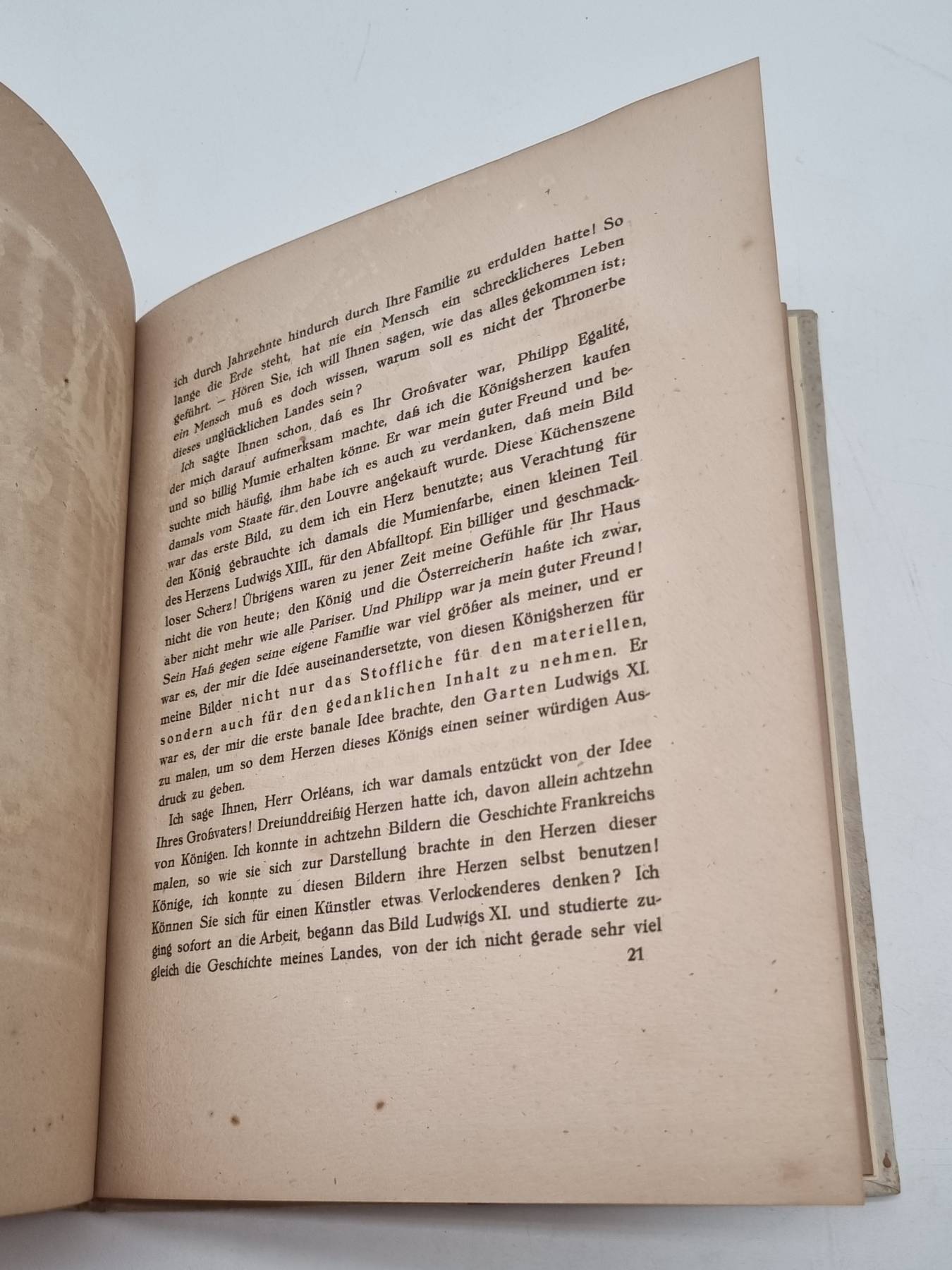 Ewers, Hanns Heinz: Die Herzen der Könige. Mit den Radierungen von Stefan Eggeler. Wien, Artur Wolf Verlag, 1922. Ca. 24,5 x 19,5 cm. 26 S., (2) Seiten. Mit 6 ganzseitigen Radierungen von Stefan Eggeler. Pergamenteinband. Exemplar 30/50 der Vorzugsausgabe A (Gesamtauflage 500 Exemplare). Im Druckvermerk von Ewers handschriftlich signiert, jede Radierung vom Künstler handschrifltich signiert. Auf handgeschöpftem Büttenpapier. Einband etwas fleckig. Vorsätze erneuert. Seiten papierbedingt gebräunt, teils stockfleckig.