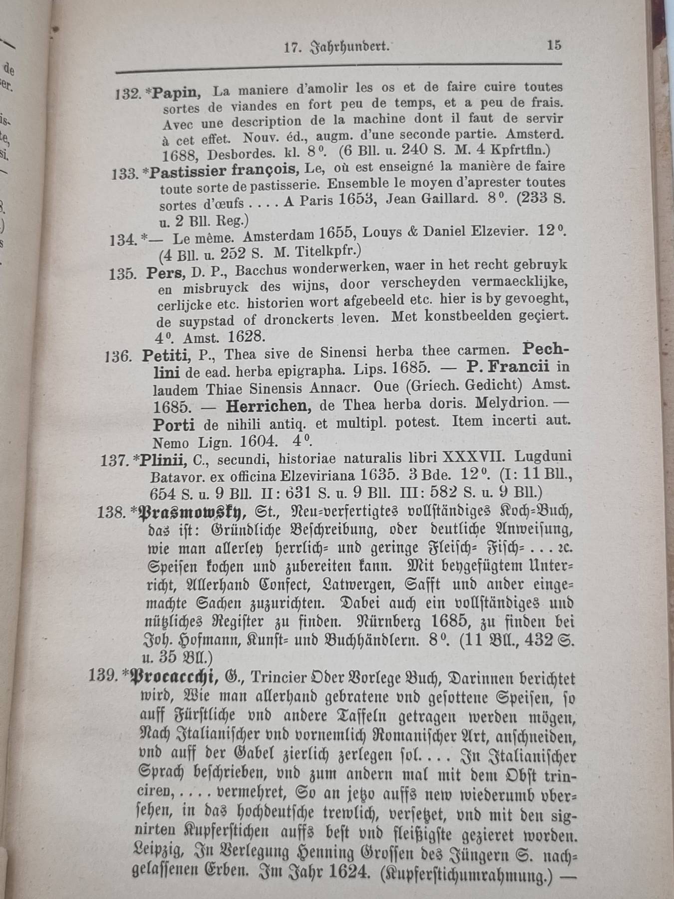 Georg, Carl: Verzeichnis der Litteratur über Speise und Trank bis zum Jahre 1887. Hannover, Klindworth’s Verlag, 1888. Ca. 22 x 14,5 cm. (4) S., 131 Seiten. Etwas späterer Halblederband. Mit Exlibris. Originalausgabe des bibliographischen Standardwerks zur Kochkunst mit 1704 Eintragungen. Vorsätze etwas gebräunt, gutes Exemplar.