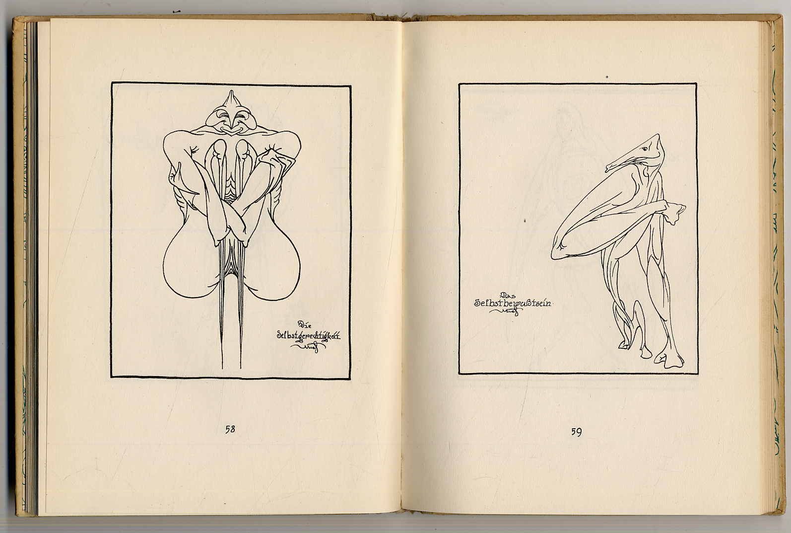 Birnbaum, Uriel: Der Seelen-Spiegel hundertundzwanzig Grotesken. Leipzig und Wien, Thyrsos Verlag, 1924. Ca. 21 x 15 cm. (5) S., 120 S., (3) Seiten. Mit 120 Illustrationen. Farbig illustr. Orig.-Pappband. Einband leicht fleckig und etwas gebräunt. Sonst gutes Exemplar.