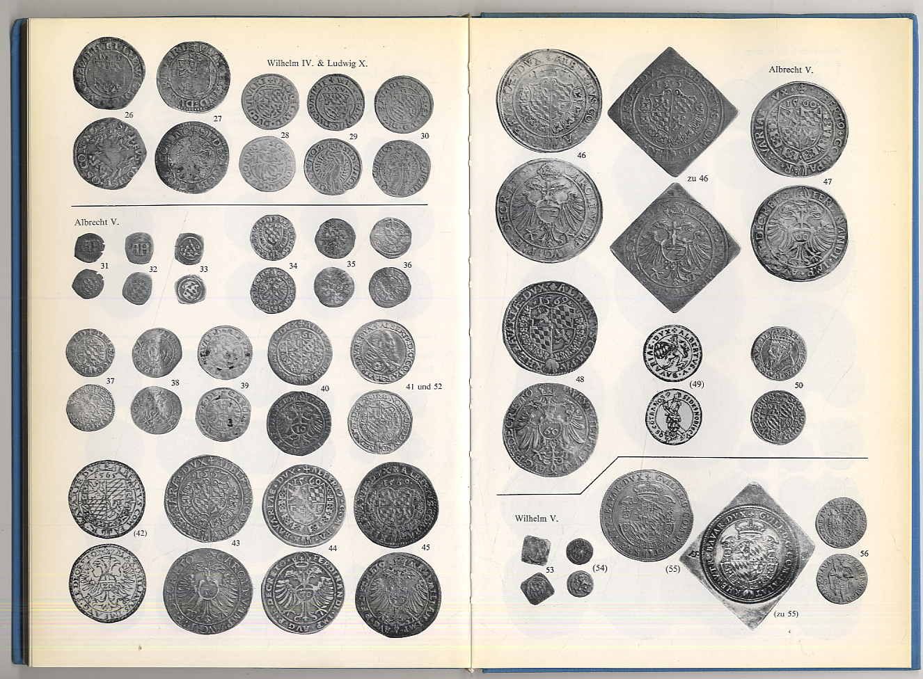 Hahn, W. R. O.: Typenkatalog der Münzen der bayerischen Herzöge und Kufürsten 1506-1805. Braunschweig, Klinkhardt & Biermann, 1971. Ca. 25,5 x 17,5 cm. 79 Seiten, 31 Münztafeln. Blauer Orig.-Leinenband. Einband leicht fleckig. Kleiner Nummernaufkleber auf Vorsatz. Gutes Exemplar.