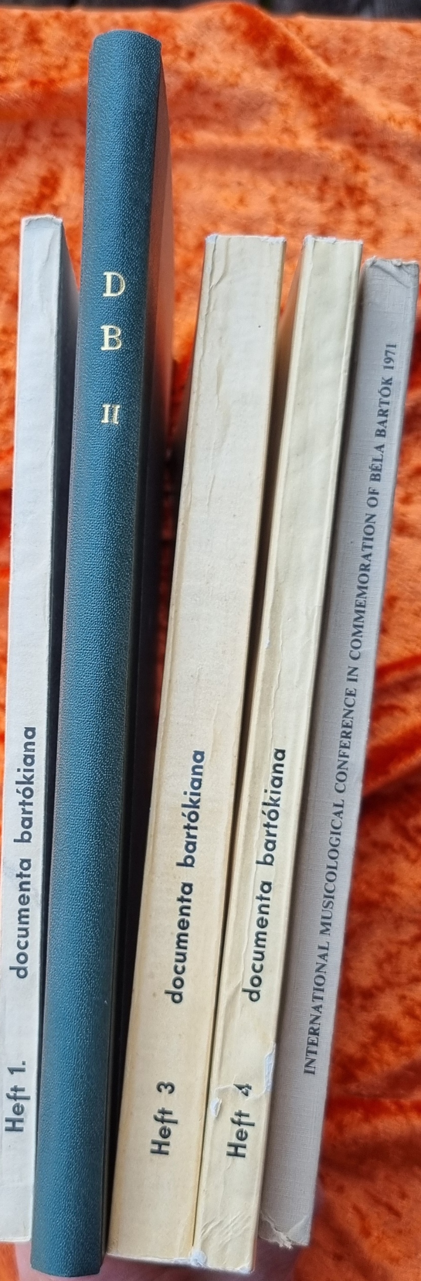 Bartók – Documenta Bartókiana. Hrsgg. von D. Dille, Bartók Archiv. Hefte 1-4 (von 6). Mainz, B. Schott’s Söhne, 1964-1970. Ca. 24,5 x 18,5 cm und ca. 28 x 20 cm. Originalbroschuren und Halbleinenband (Heft 2). Mit Original-Schallplatte „Arabische Musik“ zu Band 2. Beigefügt: International Musicological conference in Commemoration of Béla Bartók 1971.