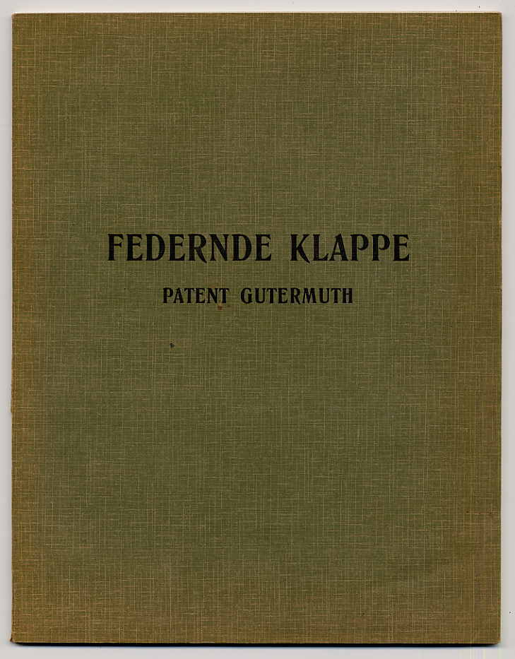 Pumpen, Kompressoren und Gebläse mit Federnden Klappen System Gutermuth. (Deckeltitel: Federnde Klappe). Ohne Verlagsangabe, o.J., um 1910. Ca. 31,5 x 24 cm. 62 Seiten. Mit 162 Textabbildungen. Orig.-Broschur. Patentinhaber der „Gutermuth-Klappe“ war Geheimer Baurat M[ax] F. Gutermuth. Gutermuth (1858-1943) lehrte Maschinenbau an der Technischen Hochschule zu Darmstadt. Titelblatt zum Falz hin leicht stockfleckig, sonst gutes Exemplar.