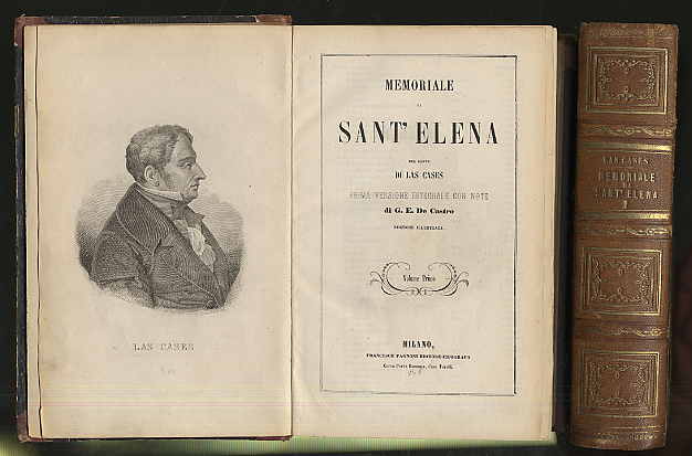 Castro, G. E. de: Memoriale di Sant’Elena del Conte di Las Cases. 2 Bände. Milano, Francesco Pagnoni, um 1860. Ca. 22,5 x 15 cm. 656; 792 Seiten. Mit 88 Tafeln in Stahlstich. Dekorative Halblederbände der Zeit mit reicher Rückenvergoldung. Sprache: Italienisch. Kanten berieben, 1 Deckel mit größerer Schabspur. Vorsätze von Band 2 mit Papierstreifen verstärkt, innen ganz leicht fleckig.