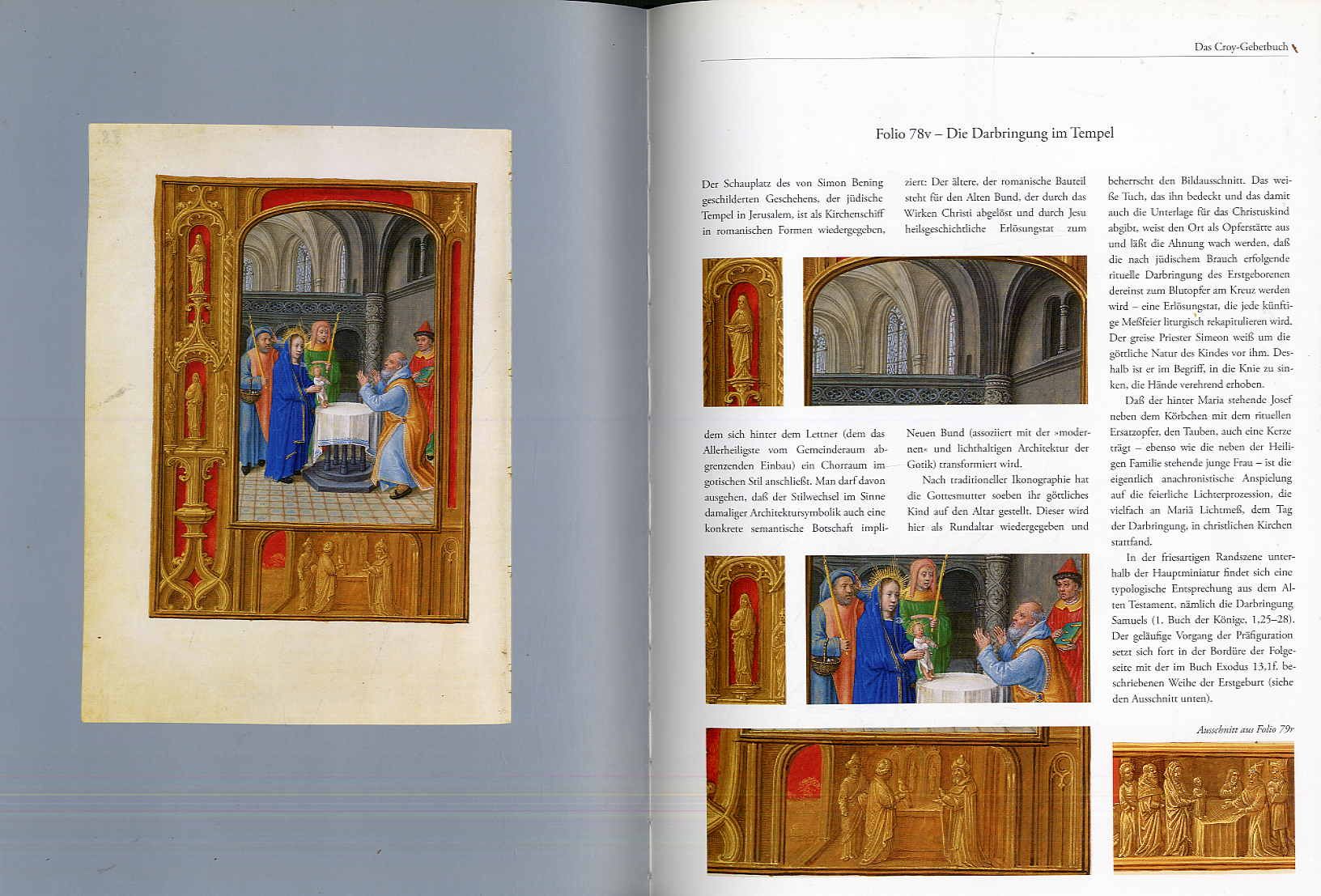 Wolf, Norbert: In Konkurrenz zum gedruckten Buch: Die Meister von Gent und Brügge. Herausgegeben von Ingo F. Walther. Luzern, Faksimile Verlag Edition Bel-Libro, 2006. Ca. 32 x 23,5 cm. 125 S., (3) Seiten. Mit zahlreichen farbigen Illustrationen und drei beigegebenen Faksimiles aus Simon Benings Silbernen Stundenbuch, Folio 2/3, 115/116 und 127/128. Blauer Orig.-Leinenband mit Goldprägung. Aus der Reihe: Die Galerie der schönsten Bücher, Buchmalerei erleben. Die Faksimiles unter starkem Passepartout, dem Titelblatt vorgebunden. Sehr gutes Exemplar.
