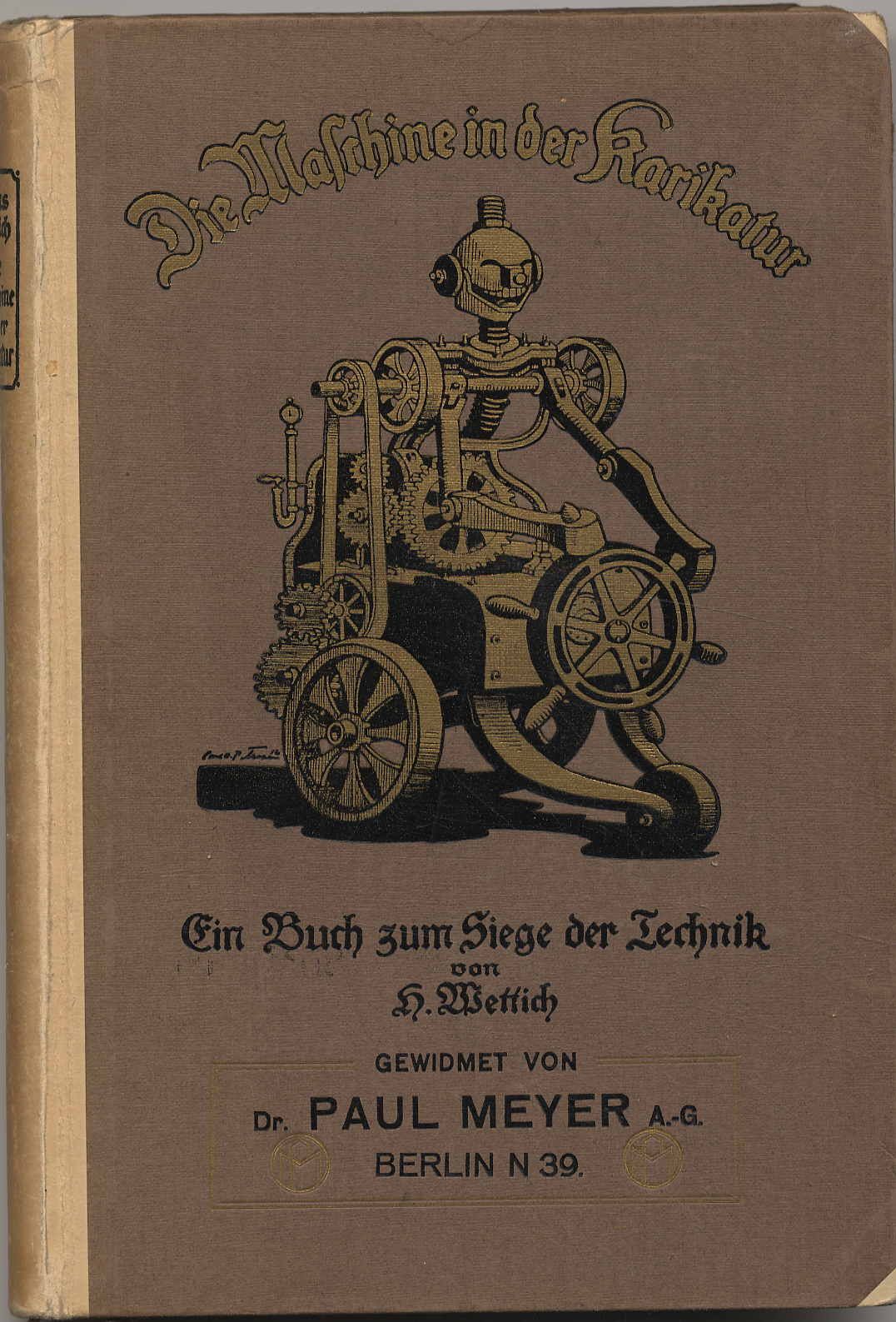 Wettich, Hans: Die Maschine in der Karikatur. Ein Buch zum Siege der Technik. Berlin, Verl. der „Lustigen Blätter“, 1916. Ca. 22,5 x 15 cm. 216 Seiten. Mit zahlreichen Illustrationen. Illustr. Original-Halbleinenband. Vorsätze erneuert, gutes Exemplar mit zahlreichen humorvollen Illustrationen.
