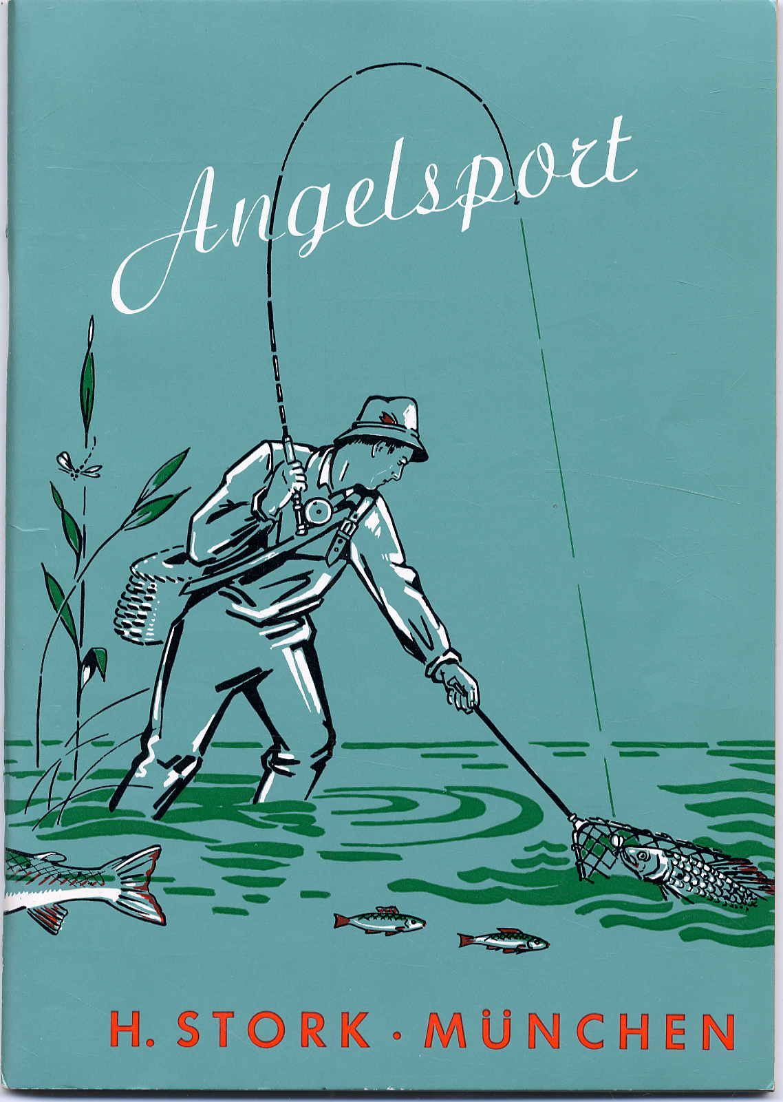 Stork – Angelsport. H. Stork, München. München, um 1973. Ca. 21,5 x 15,5 cm. 83 Seiten. Mit zahlreichen s/w-Abbildungen und 4 farbigen Tafeln mit Kunstfliegen. Farbig illustrierter Orig.-Karton. Verkaufskatalog mit Preisen. Gutes Exemplar. Wichtiges Nachschlagewerk für alle Sammler von alten Angelgeräten.
