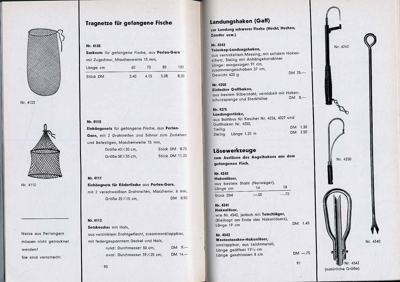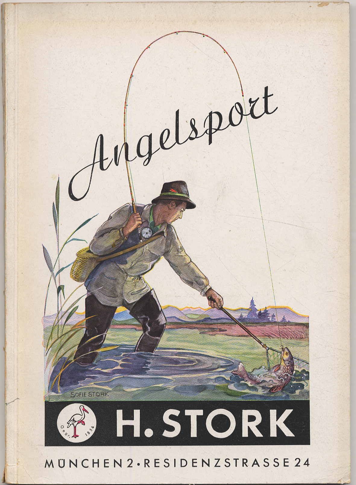 Stork – Stork’s Angelsport-Katalog 1955. H. Stork, München. München, 1955. Ca. 22 x 15,5 cm. 112 Seiten. Mit zahlreichen s/w-Abbildungen und 3 farbigen Tafeln mit Kunstfliegen. Farbig illustrierter Orig.-Karton. Verkaufskatalog mit Preisen. Gutes Exemplar. Wichtiges Nachschlagewerk für alle Sammler von alten Angelgeräten.