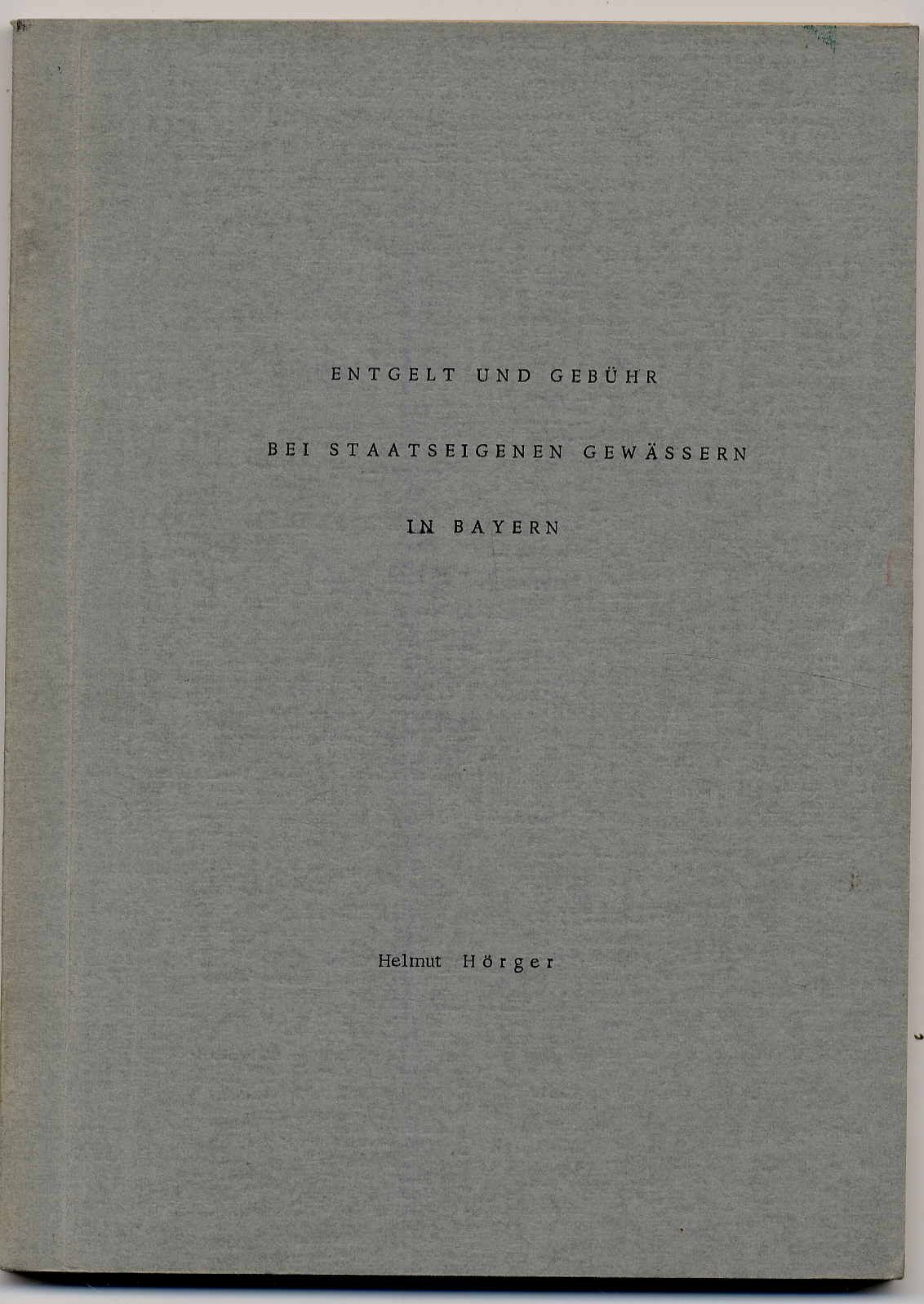 Hörger, Helmut: Entgelt und Gebühr bei staatseigenen Gewässern in Bayern. Dissertation. München, 1966. Ca. 21 x 15 cm. XVI S., 123 Seiten. Originalkartonierter Einband. Seiten papierbedingt leicht gebräunt. Aus dem Inhalt u.a.: Abgabenrecht; Das Recht der öffentlichen Sachen; Entgelt und Gebühr im geltenden Wasserrecht; Verfassungsrecht und Entgelt und Gebühr.