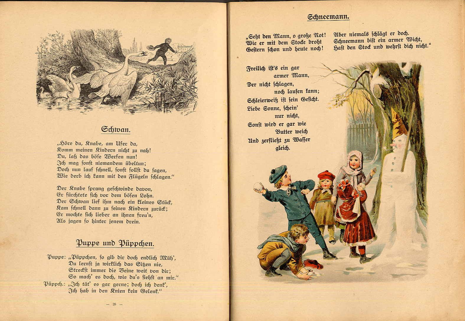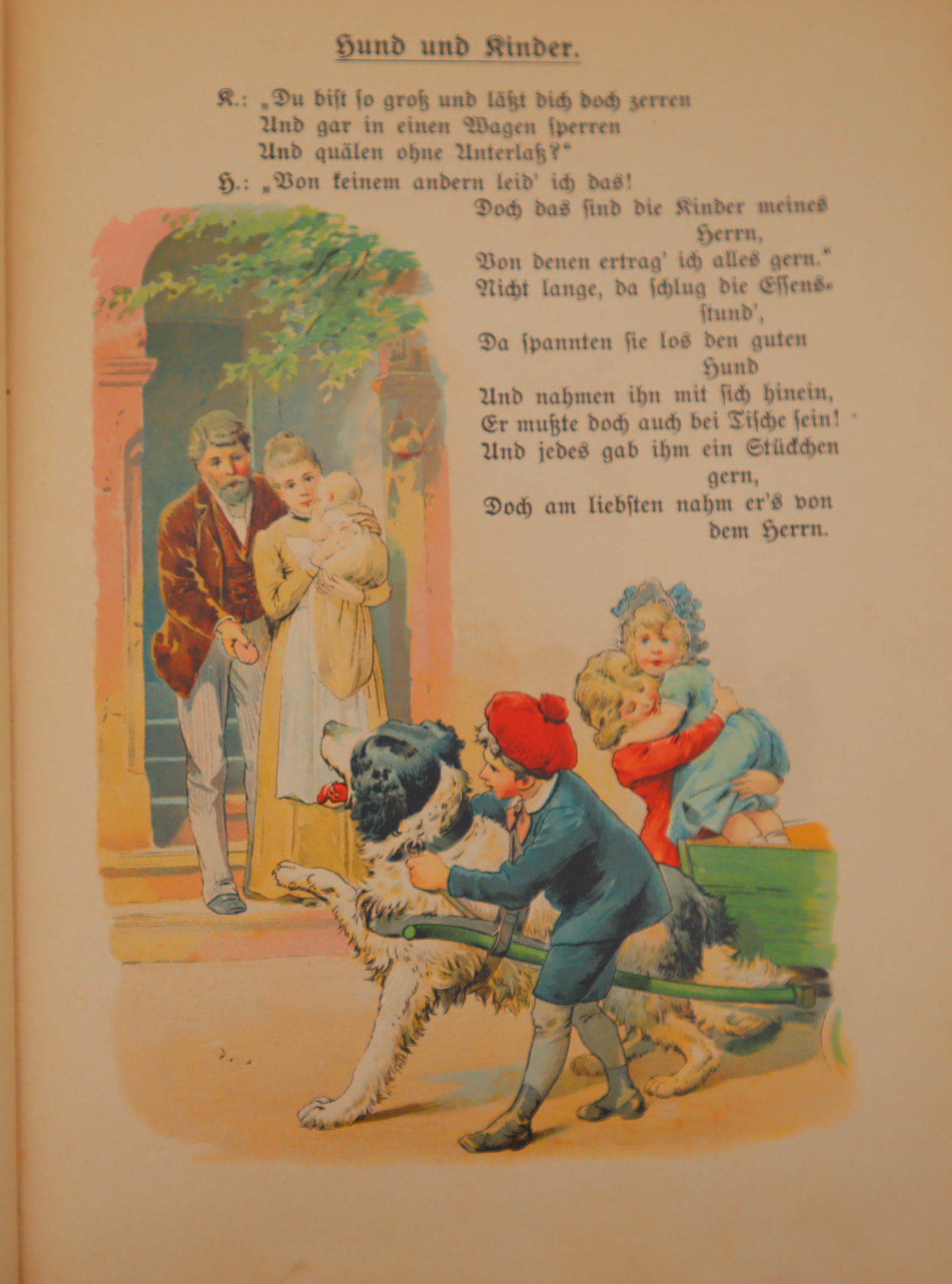 Hey, Wilhelm: Fünfzig Fabeln für Kinder. 13. Auflage. Stuttgart, Loewes Verlag Ferdinand Carl, o.J., 1920er Jahre. Ca. 30,5 x 23 cm. (2) S., 32 Seiten. Mit 8 Farbdruckbildern und 51 Textillustrationen von Eugen Klimsch, Wilhelm Schäfer, Chr. Votteler u.a.m. Farbig illustr. Orig.-Halbleinenband. Ries 641,36, Bilderwelt 1060 und Wegehaupt II, 1282 (jeweils frühere Auflagen). Einbandkanten etwas bestoßen. Vorsätze leicht gelockert. Seiten teils leicht fingerfleckig am Rand. Drei Textillustrationen sauber ancoloriert. Mit Reimen und hübschen Illustrationen.