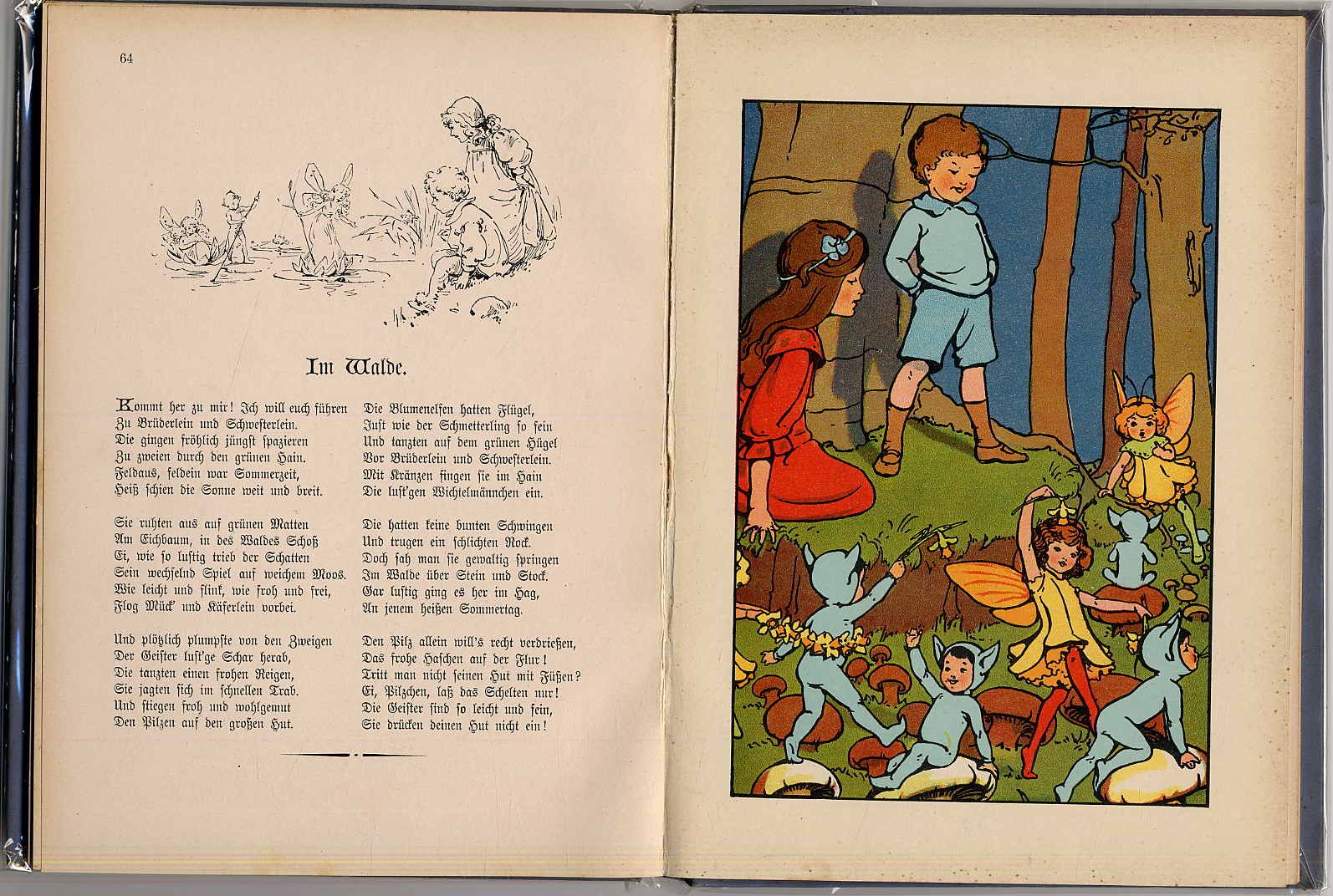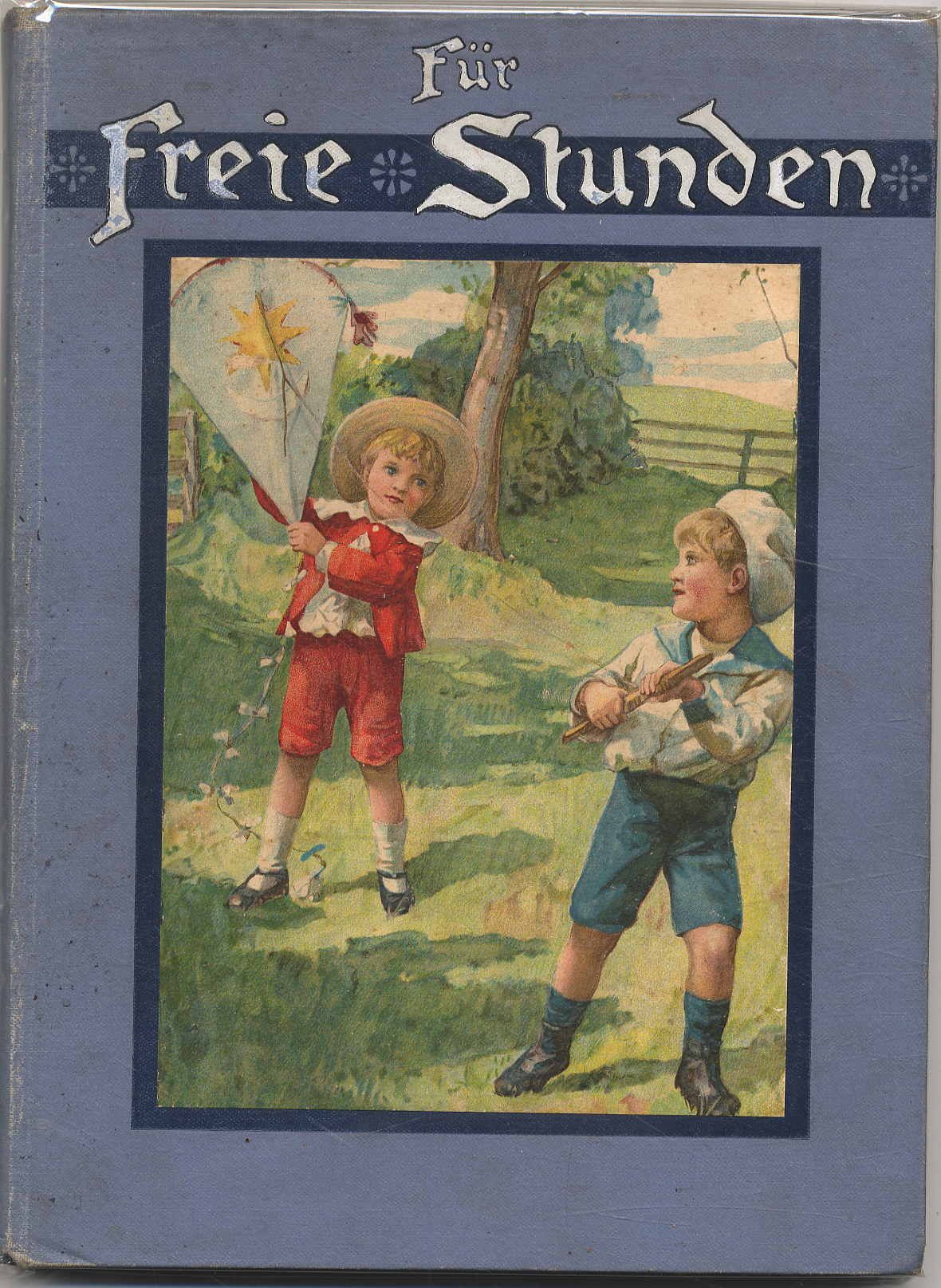 Marquardsen, A[nna]: Für freie Stunden. Ein Gruss an die Kinderwelt in Wort und Bild. Erzählungen, Märche u. Gedichte für Kinder von 7-10 Jahren. Nürnberg, Theo Stroefer’s Kunstverlag, [1910]. Ca. 24 x 17,5 cm. 96 Seiten. Mit 5 (von 6) farbigen Tafeln und zahlreichen Textillustrationen. Farbig illustr. Orig.-Halbleinenband. Klotz 4422/36. Vermutlich fehlt das Titebild. Namenszug auf Vorsatz. Sonst gutes Exemplar.