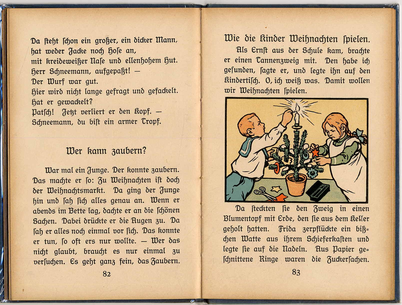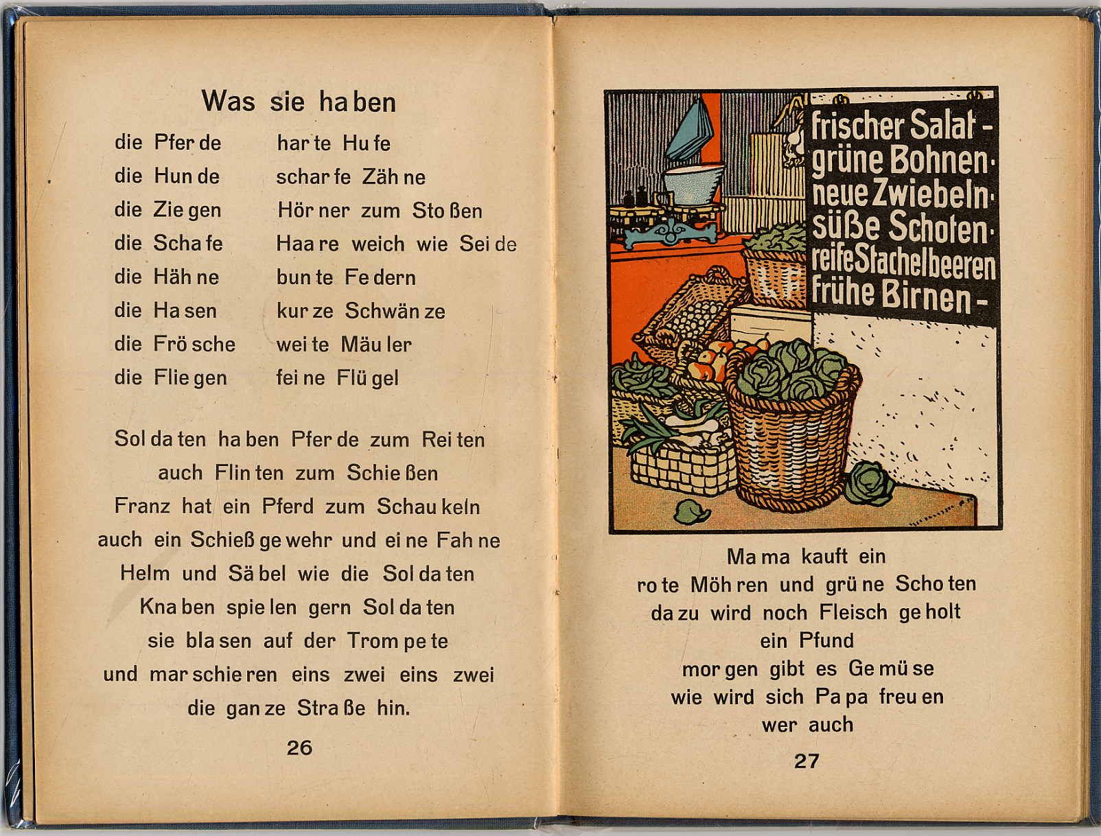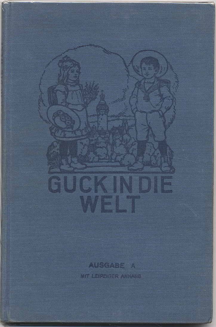 Leipziger Lehrerverein (Hrsg.): Guck in die Welt. Ein Lesebuch für ABC-Schützen. Ausgabe A für Stadtschulen. 9. Auflage. Leipzig, Friedrich Brandstetter, 1927. Ca. 22 x 14,5 cm. (2) S., 116 S., (2) S., 13 S., (3) Seiten. Mit teils farbigen Bildern von A[lfred] Warnemünde. Illustr. Orig.-Leinenband. Teistler 2472.8. Besitzeintrag auf Vorsatz und Titelblatt. Waldschmidt 85 (Ausgabe 1920): „Die Themen dieser Fibel sind durchweg aus der Umwelt des Kindes (Puppengeburtstag, beim Kaufmann). Religiöse Feste und Feiern kommen oft vor.“ Die letzten 16 Seiten „Leipziger Anhang zu Guck in die Welt“. Einband leicht berieben.