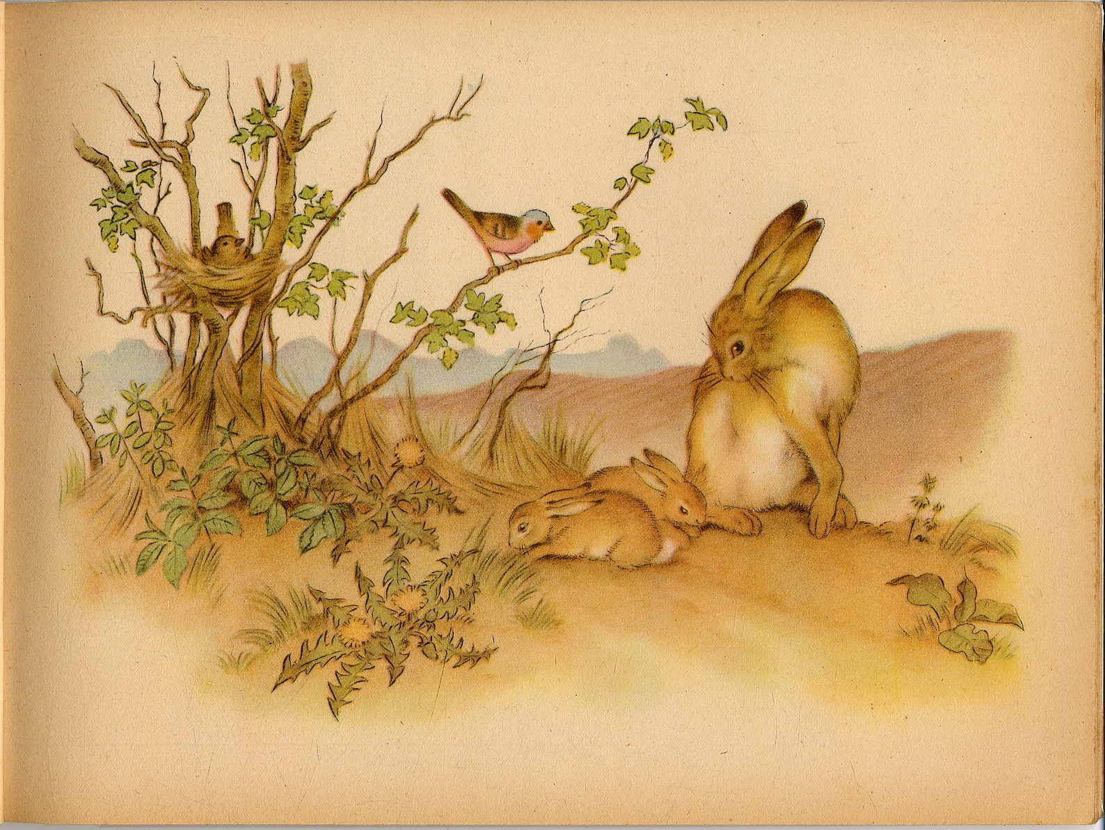 Zglinicky, F[riedrich] P[russ] v.: Löffelmann und Mümmeline. Eine Hasengeschichte. Berlin, Alfred Holz, 1947. Querformat, ca. 20 x 28 cm. 24 unpaginierte Seiten. Mit 12 (davon 11 ganzseitigen) farbigen Illustrationen. Farbig illustr. Orig.-Pappband. Hübsch illustriertes Hasenbilderbuch. Einband leicht angestaubt.