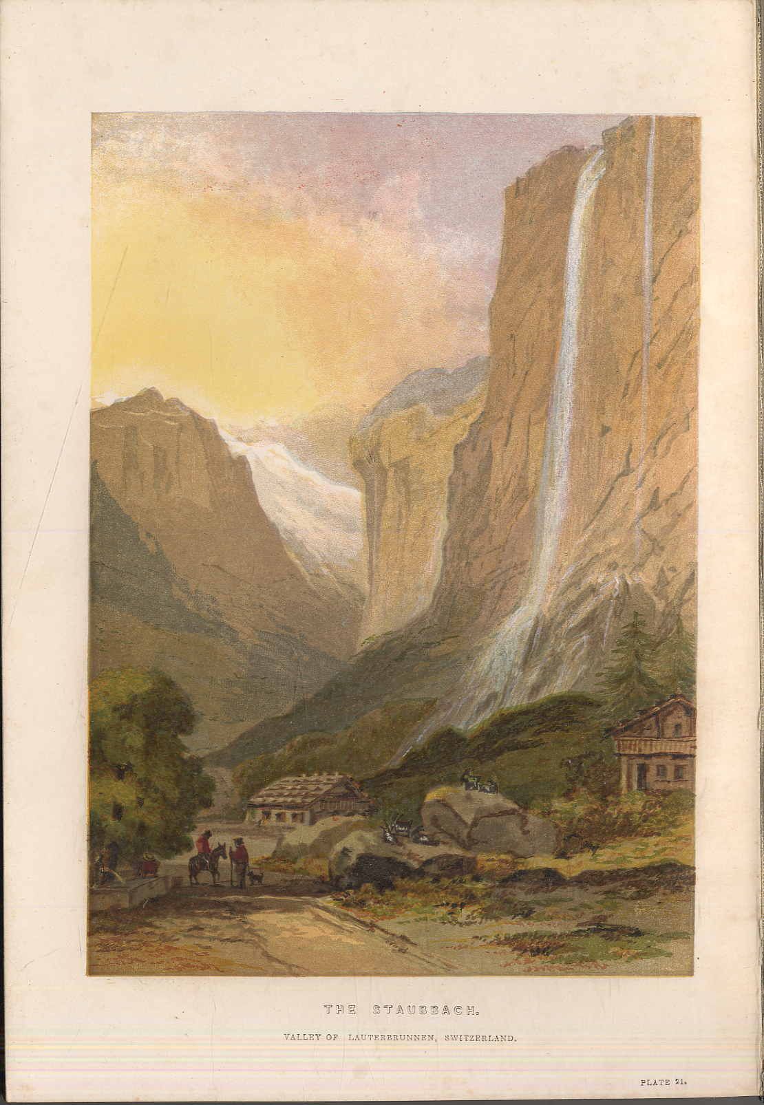 Barnard, George: The theory and practice of landscape painting in water-colours. Illustrated by a series of thirty drawings and diagrams in colours, and numerous woodcuts. New and enlarged edition. London, Hamilton, Adam and Co., 1858. Ca. 27 x 19 cm. (10) S., 286 Seiten. Mit 30 Farblithographien und zahlreichen Textholzschnitten. Roter Orig.-Leinenband mt Goldprägung. Rücken mit rotem Leinen später neu hinterlegt und etwas bestoßen. Einige Seiten minimal stockfleckig. Gutes Exemplar.