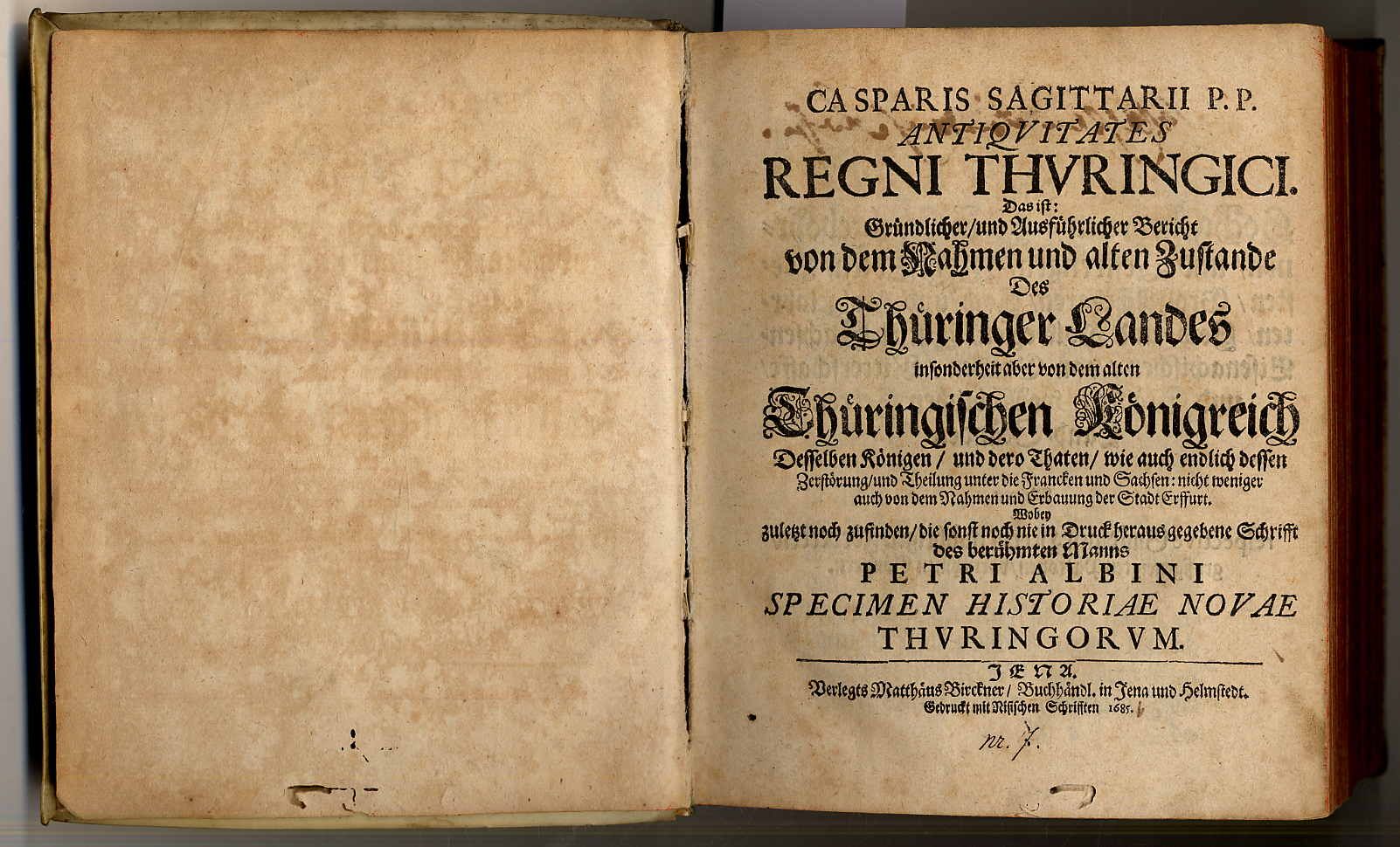 Sagittarius, 1) Casparis Sagittarii P.P. Antiquitates Regni Thuringici. Das ist