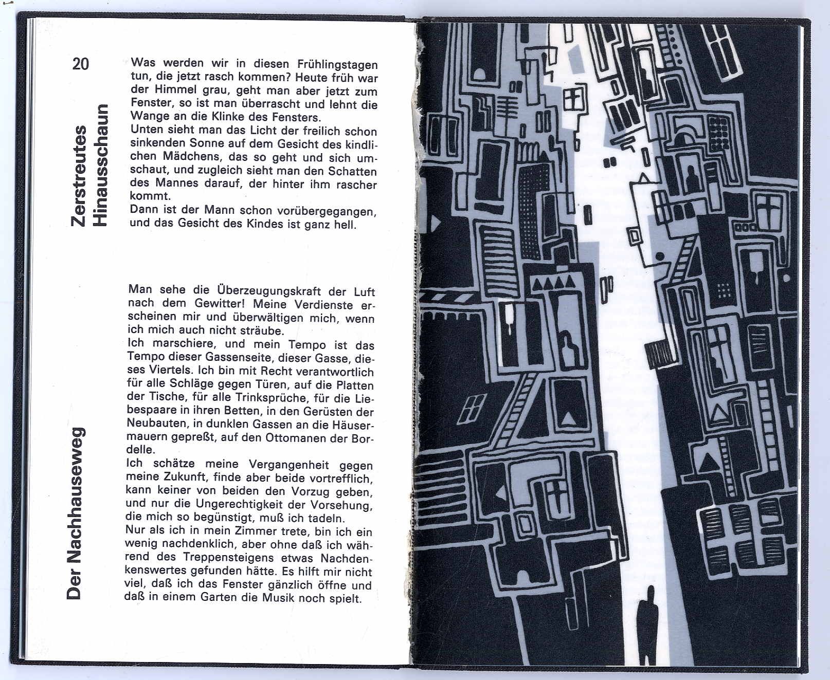 Kafka, Franz: Erzählungen. Betrachtung. Leipzig, Leipziger Hochschule für Grafik und Buchkunst, 1988. Ca. 20 x 12,5 cm. 32 S., (4) Seiten. Mit ganzseitigen, teils doppelblattgroßen Illustrationen von Cornelia Ellinger. Schwarzer Orig.-Leinenband. Exemplar 24/50. Diese Ausgabe erschien als Bestandteil einer Diplomarbeit an der Leipziger Hochschule für Grafik und Buchkunst. Typographie und Illustration von Cornelia Ellinger. Gutes Exemplar. Von C. Ellinger handschriftlich signiert.