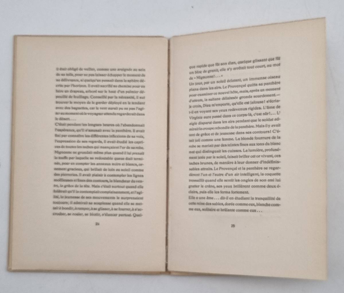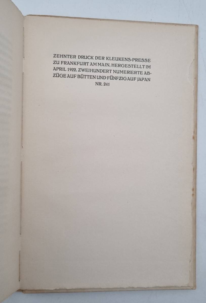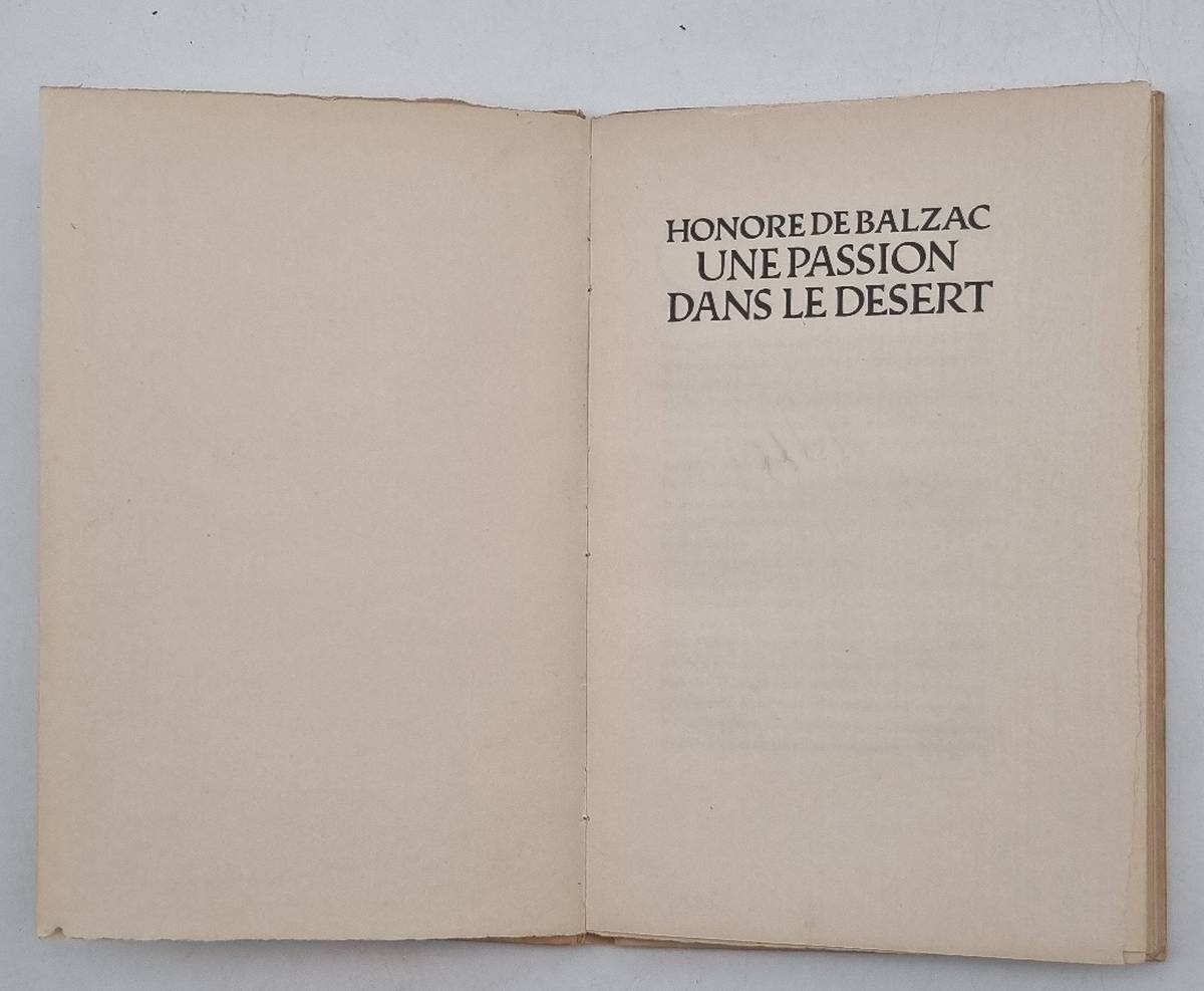 Balzac, Honore de: Une passion dans le desert. Darmstadt, Kleukens-Presses, 1922. Ca. 19 x 12,5 cm. 26 S., (4) Seiten. Orig.-Pappband. Zehnter Druck der Kleukens-Presse. Exemplar 241/250. Rodenberg 104. Rücken etwas bestoßen. Einband gebräunt und leicht fleckig. Vorsätze stockfleckig und mit großem Wappen-Stempel.