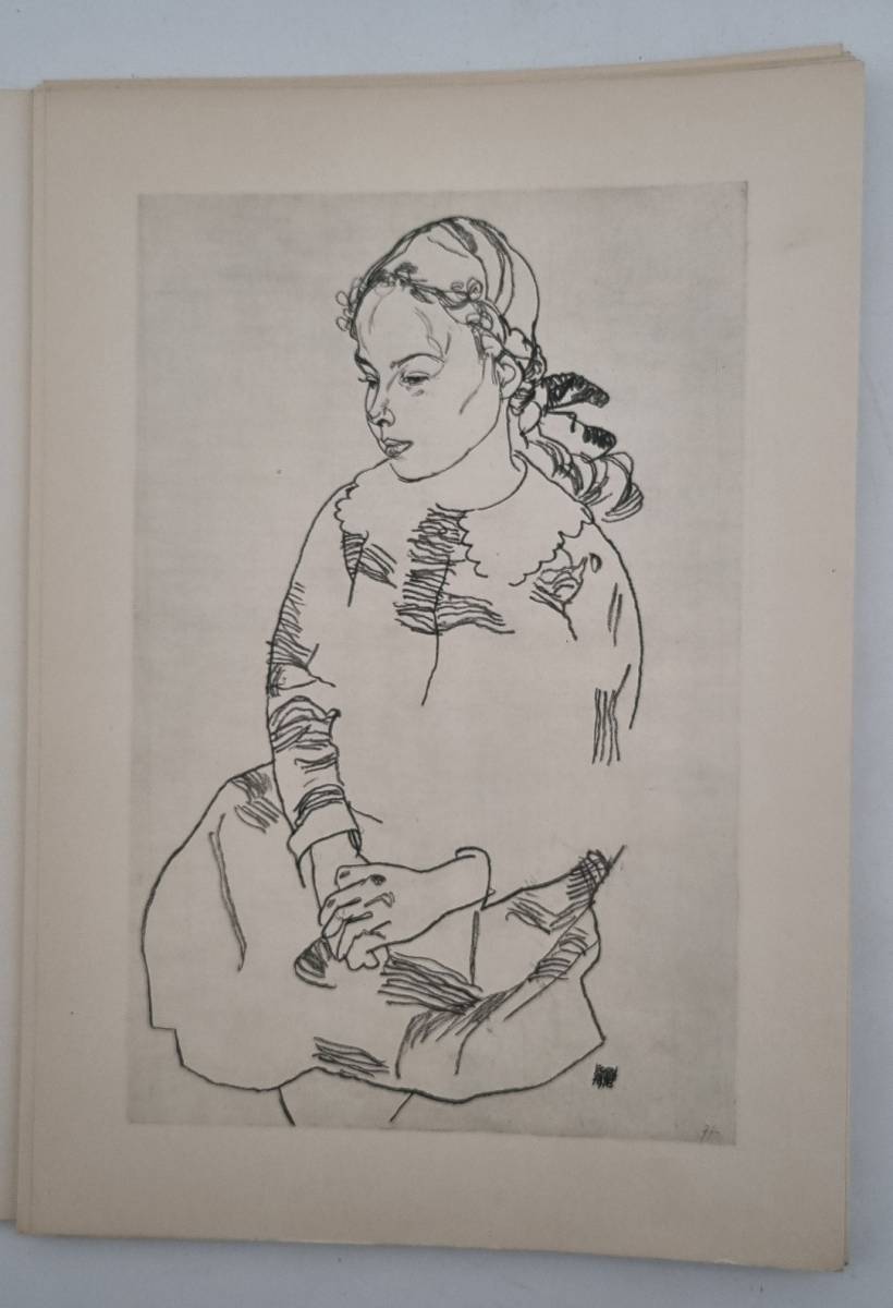 Benesch, Otto: Egon Schiele als Zeichner. Wien, Verlag der österreichischen Staatsdruckerei, [1951]. Ca. 34 x 23,5 cm. textheft 13 S., (1) Seite; 24 (davon 16 farbige) lose Tafeln. Original-kartonierte Mappe. Einband etwas lichtrandig. Ohne das Blatt mit dem Tafelverzeichnis, sonst gutes Exemplar mit den schön gedruckten Tafeln, darunter die Portraits von Arnold Schönberg, Franz Martin Haberditzl, der Mutter und Schwester des Künstlers, Selbstbildnisse. Die Tafeln rückseits mit Bildlegende und Provenienz. Der Einbandentwurf (unter Verwendung der Signatur Schieles) der grünen Mappe stammt von Epi (Elfriede) Schllüsselberger (1926-2023, Wiener Grafikerin und Kostümbildnerin). Otto Benesch (1896-1964), Sohn des Kunstsammlers Heinrich Benesch, einem der ersten und wichtigsten Förderer Egon Schieles, wuchs in engem Kontakt mit moderner Kunst auf. Nach dem Studium der Kunstgeschichte in Wien arbeitete er ab 1920 am Kunsthistorischen Museum und später an der Albertina. 1938 zur Emigration gezwungen, lehrte er in den USA, u.a. in Harvard und Princeton. 1947 kehrte er nach Wien zurück, wo er bis 1962 als Direktor der Albertina den Aufbau einer bedeutenden Sammlung moderner Graphik prägte. Als außerordentlicher Professor für Kunstgeschichte und Präsident des Dokumentationsarchivs des österreichischen Widerstandes setzte er sich intensiv mit der NS-Vergangenheit auseinander.