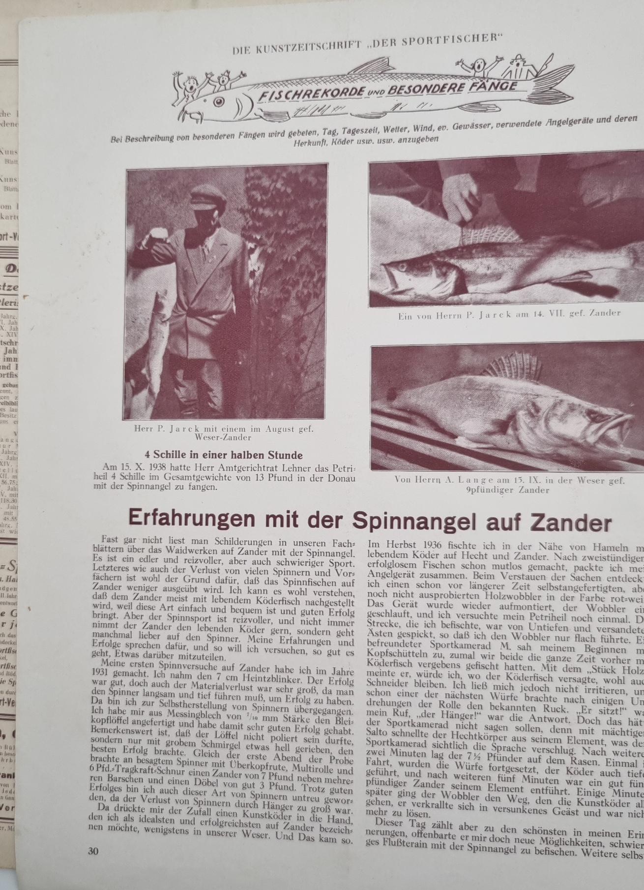 Angeln – Die Kunstzeitschrift „Der Sportfischer“. Illustrierte Zeitschrift für die gesamte Sportfischerei. 16. Jahrgang 1939. Hefte 1-12 (Januar bis Dezember). München, Verlag Hanns Schindler, 1939. Ca. 31,5 x 24 cm. 235 Seiten. Mit zahlreichen Abbildungen. 12 Original-Broschuren. Der komplette Jahrgang in 12 losen Heften. Einige Hefte etwas fleckig und mit leichten Knickspuren. Sonst gutes Exemplar. Mit zahlreichen Berichten und Abhandlungen, reich illustriert. Aus dem Inhalt u.a.: Über Zanderzucht in Karpfenteichwirtschaften; Auf Zanderfang an der Oberweser; Die Grundfischerei und das Grundangeln; Auf Barschfang in Mecklenburg; Großfischfang an der Pazifikküste Mexikos; Erfahrungen beim elektrischen Fischen; Sportliche Erkundungsfahrt nach Jugoslavien; Anglertage in Malinska; Zur Aufzucht des Aschen; Wo steht der Asch?; Das schöne Lettgallen.