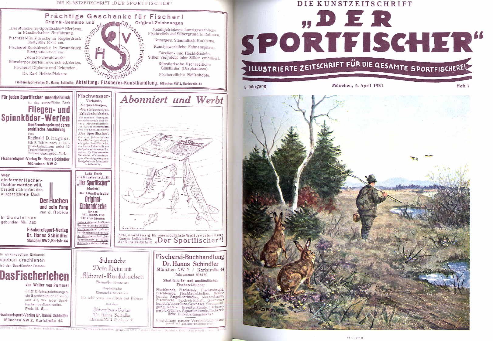 Angeln – Die Kunstzeitschrift „Der Sportfischer“. Illustrierte Zeitschrift für die gesamte Sportfischerei. VIII. Jahrgang 1931. Hefte 1-24 (Januar bis Dezember). München, Verlag Hanns Schindler, 1931. Ca. 31,5 x 24,5 cm. 471 Seiten. Mit zahlreichen Abbildungen. Illustrierter Original-Leinenband. Der komplette Jahrgang in 24 gebundenen Heften. Rücken geklebt. Einband leicht fleckig. Das erste Blatt etwas angerändert. Mit zahlreichen Berichten und Abhandlungen, reich illustriert. Aus dem Inhalt u.a.: Das Fischerstechen in Ulm; Der Huchenfang mit Holzködern; Ein Fischwasser in Livland; Ein Fluß für Lachse in Frankreich; Erfahrungen mit Aiteln; Fischbrutanlagen im Eigenbetrieb; Garneelen und Garneelenfang an der Südküste Javas; Gegen das wilde Badeunwesen; Geräte und Ausrüstung; Mit Angel und Schleuder auf Aitelfang; Vom Amurlachs; Wie werden Goldfische bei uns in Indien gezüchtet.
