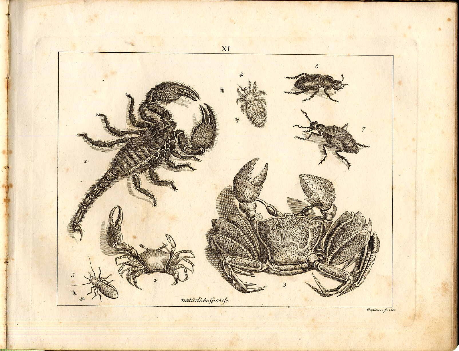 Funke – Kupfer-Sammlung besonders zu Funke Naturgeschichte und Technologie aber auch zu jedem anderen Lehrbuche der Naturgeschichte brauchbar. Zur allgemeinen Schulencyklopädie gehörig. Braunschweig, Verlage der Schulbuchhandlung, [1803]. Querformat, ca. 22,5 x 29 cm. (2) S., 90 Seiten, mit 24 Kupferstichtafeln. Pappband der Zeit. Einband stärker berieben und bestoßen. Seiten teils stock- bzw. fingerfleckig, zwei Tafeln mit kleineren Einrissen. Die Kupfer zeigen u.a.: Walfische, Elefant, Giraffe, Kamel, Löwe, Tiger, Luchs, Eisbär, Orang Utan, Kakadu, Goldadler, Flamingo, Kropftaube, Pelikan, Eisvogel, Kreuzschnabel, Kampfhahn, Stachelkugel, Schildkröte, Taschenkrebs, Herkuleskäfer, Kristalle des Küchensalzes, Schildlaus, Badeschwamm, Floh, Stubenfliege, Hausbockkäfer, Maulwurfsgrille, Faustspinne, Bandwurm, Tintenwurm, Herbstzeitlose, Fingerhut, Kaffeebaum, Knochengerüst des menschlichen Körpers, System der Blutgefäße, weiblicher Eierstock, eine achtwöchentliche Frucht, Venusfliegenfalle, Hammerhai u.v.m.