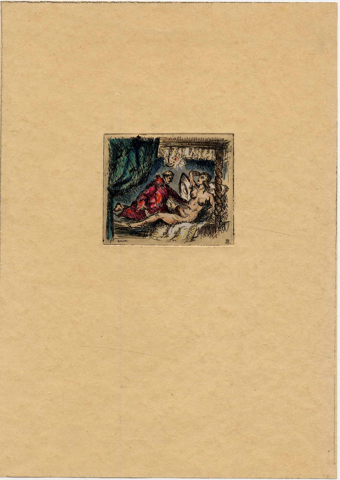 Theermann, 7 erotische handcolorierte Radierungen von Erwin Theermann.