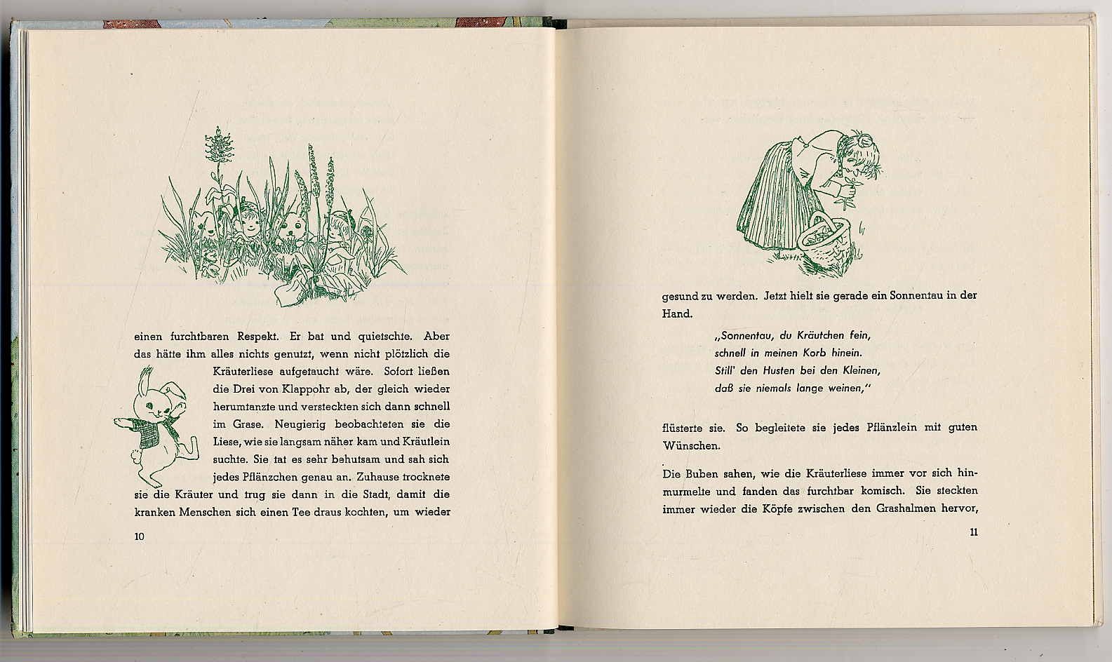 Castièl, Nina: Sonnenscheinchens Kinder. Märchen. 1. Auflage, 1.-5. Tsd. Stuttgart, Bodensee-Verlag, 1949. Ca. 21 x 19,5 cm. 30 Seiten. Mit Zeichnungen und 2 farbigen Bildern von Marigard Bantzer. Farbig illustr. Orig.-Halbleinenband. Gutes Exemplar.