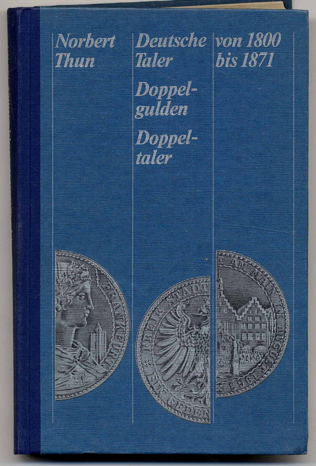 Thun, Norbert: Deutsche Taler, Doppelgulden, Doppeltaler von 1800-1871. 3. ergänzte Auflage, September 1979. Frankfurt, Verlag Frankfurter Numismatik Norbert Thun, 1979. Ca. 20,5 x 13,5 cm. 276 Seiten. Mit zahlreichen Abbildungen. Blauer Orig.-Halbleinenband. Gutes Exemplar.