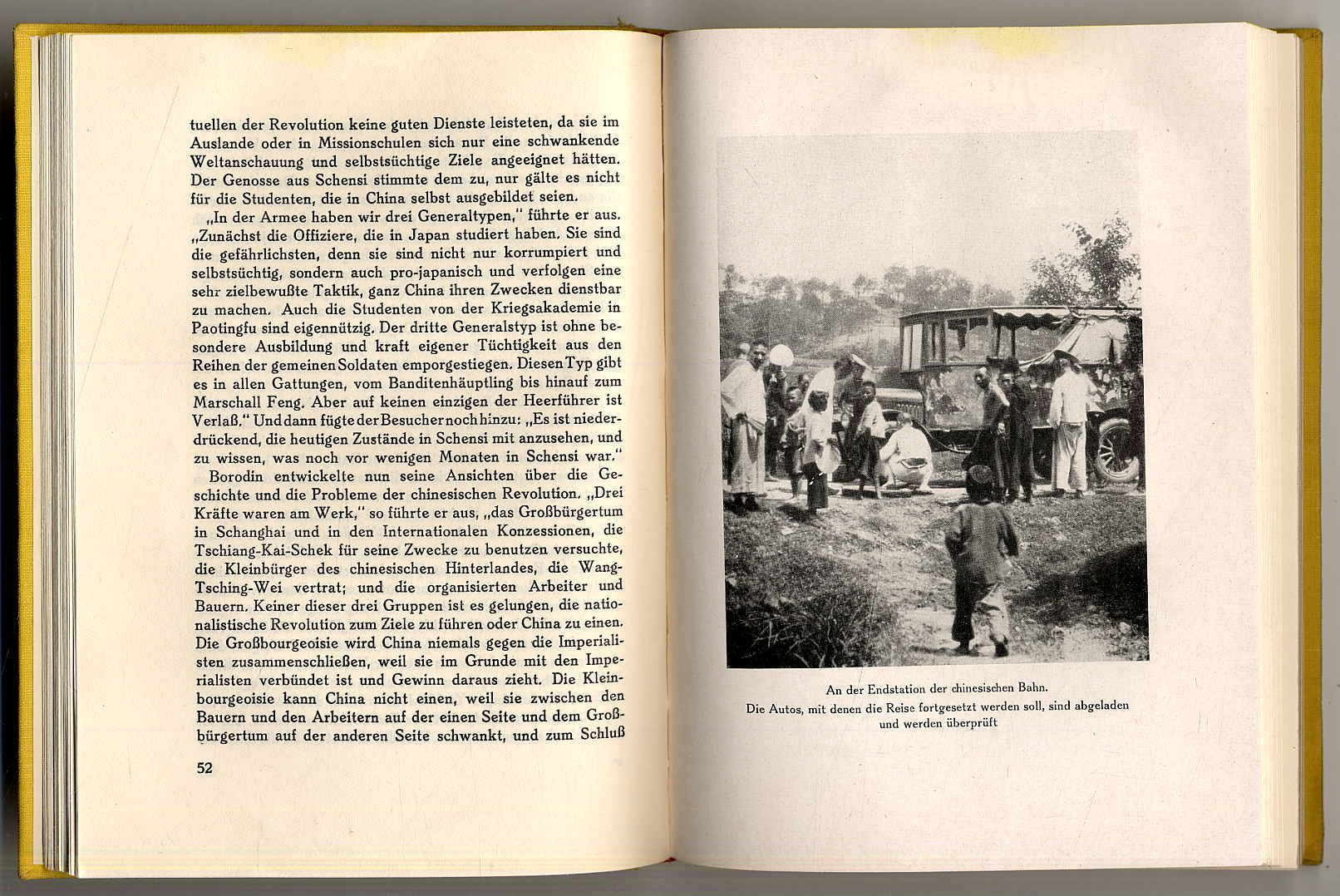 Strong, Anna Louise: China-Reise. Mit Borodin durch China und die Mongolei. Berlin, Neuer Deutscher Verlag, 1928. Ca. 21 x 16 cm. 214 S., (2) Seiten. Mit 32 Abbildungen. Gelber Orig.-Leinenband. Deutsche Erstausgabe. Strong (1885-1970, Journalistin) reiste mit Borodin (Michail Markowitsch Borodin 1884-1951, russ. Revolutionär) „zusammen von Wuhan nach Urga, dem heutigen Ulan-Butor-Choto in der Mongolei, und sie gibt hier die Aufzeichnungen, die sie während dieser langen beschwerlichen und sehr anstrengenden Reise gemacht hat. Aber sie war nicht nur anstrengend, beschwerlich und gefahrvoll, diese Reise im Auto, sie führte durch Gebiete und Landschaften, die bis heute nur ganz wenige Europäer gesehen haben.“ (Vorwort). Einband leicht fleckig, sonst gutes Exemplar.
