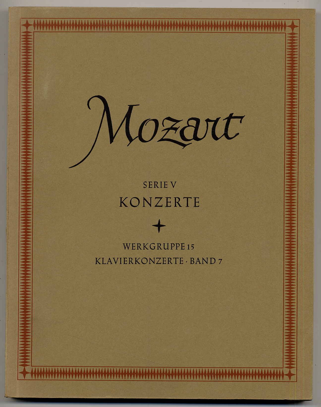 Mozart, Wolfgang Amadeus: Serie V Konzerte. Werkgruppe 15: Konzerte für ein oder mehrere Klaviere und Orchester mit Kadenzen. Band 7. Vorgelegt von Hermann Beck. Kassel u.a., Bärenreiter Verlag, 1959. Ca. 33 x 25,5 cm. XVI S., 257 Seiten Noten. Mit einigen Faksimiles. Originalkartonierter Einband. Aus der Reihe: Neue Ausgabe sämtlicher Werke in Verbindung mit den Mozartstädten Augsburg, Salzburg und Wien hrsgg. von der Internationalen Stiftung Mozarteum Salzburg. BA 4519. Partitur. Mit Einleitung zur Edition, Vorwort und Noten. Sehr gutes Exemplar.