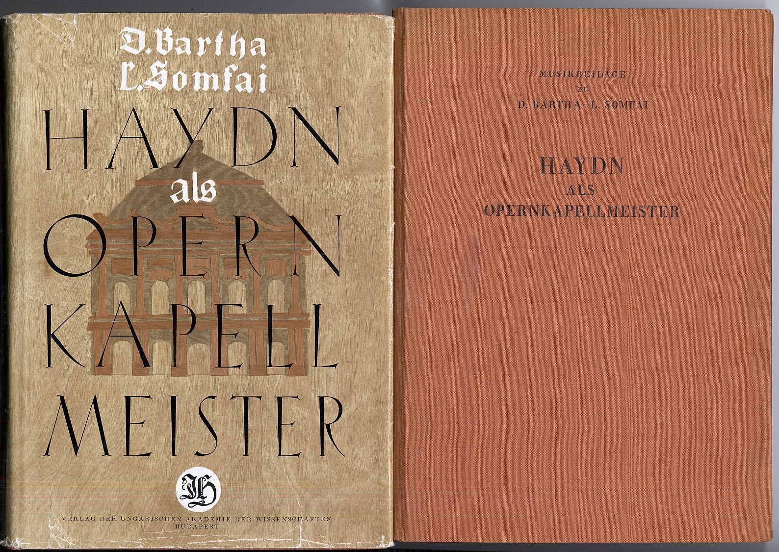 Haydn – Bartha, Dénes und László Somfai (Bearb.): 1) Haydn als Opernkapellmeister. Die Haydn-Dokumente der Esterhazy-Opernsammlung. 2) Scena di Pedtrillo (Son due ore che giro). Erstausgabe auf Grund des Partitur-Autographs und des authentischen Stimmenmaterials von 1789. 2 Bände. Budapest u.a., Verlag der Ungarischen Akademie der Wissenschaften u.a., 1960. Ca. 27 x 19 cm. 470 S., (2) Seiten, Mit Abbildungen; 29 Seiten, mit Noten und einer Schallplatte. Orig.-Leinenbände. Einbände leicht angestaubt, jedoch gutes Exemplar des Standardwerkes.
