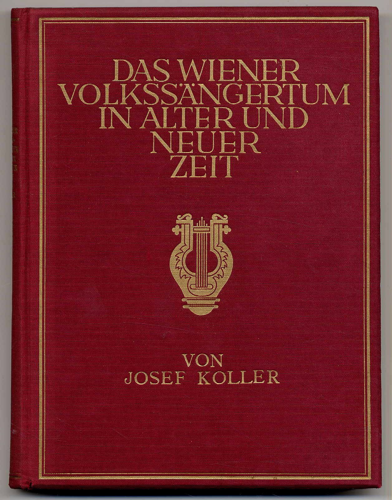 Koller, Josef: Das Wiener Volkssängertum in alter und neuer Zeit. Nacherzähltes und Selbsterlebtes; mit Biographien, Episoden, Liedern, zahlreichen Abbildungen und Porträts nach zeitgenössischen Bildern aus dem Volkssängerleben. Wien, Gerlach & Wiedling, 1931. Ca. 24,5 x 18,5 cm. VII S., 209 Seiten. Mit zahlreichen Abbildungen und Notenbeispielen. Illustrierter roter Orig.-Leinenband. Gutes Exemplar.