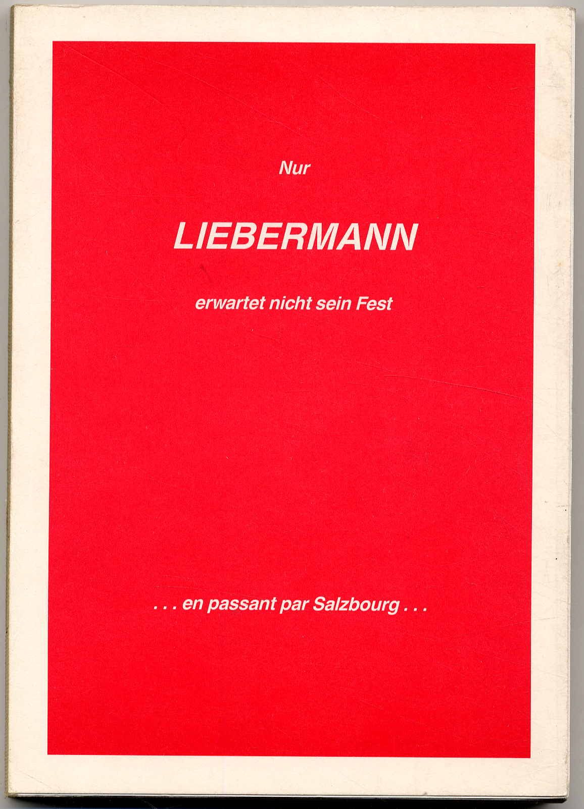 Liebermann – Nur Liebermann erwartet nicht sein Fest … en passant par Salzbourg …. (Deckeltitel). Festschrift Rolf Liebermann gewidmet. Salzburg, 1987. Ca. 21 x 15 cm. Ca. 100 einseitig bedruckte Blätter, mit einigen Illustrationen und Notenbeispielen. Originalkartonierter Einband. Grußadressen für Rolf Liebermann (1910-1999, Komponist, ab 1982 Gastprofessor am Mozarteum) von Kollegen und Studierenden anläßlich seines Abschieds vom „Mozarteum“ Salzburg. In kleiner Auflage erschienener Privatdruck, hier Exemplar 30/45.