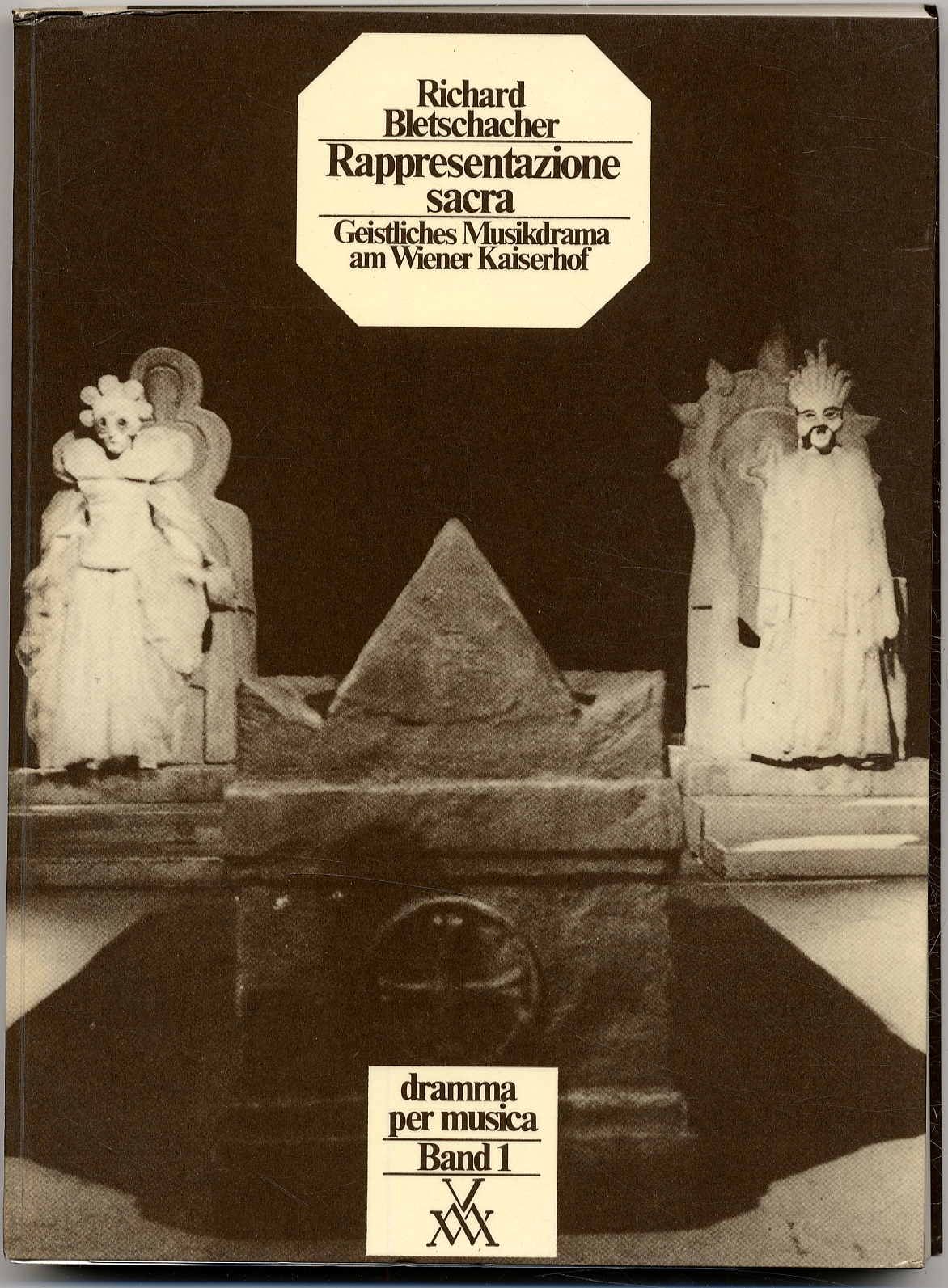 Bletschacher, Richard: Rappresentazione sacra. Geistliches Musikdrama am Wiener Kaiserhof. Wien, Musikwissenschaftlicher Verlag, 1985. Ca. 23 x 17 cm. 272 Seiten. Mit Abbildungen auf Tafeln und Notenbeispielen. Originalkartonierter Einband. Aus der Reihe: dramma per musica, Band 1. Gutes Exemplar.