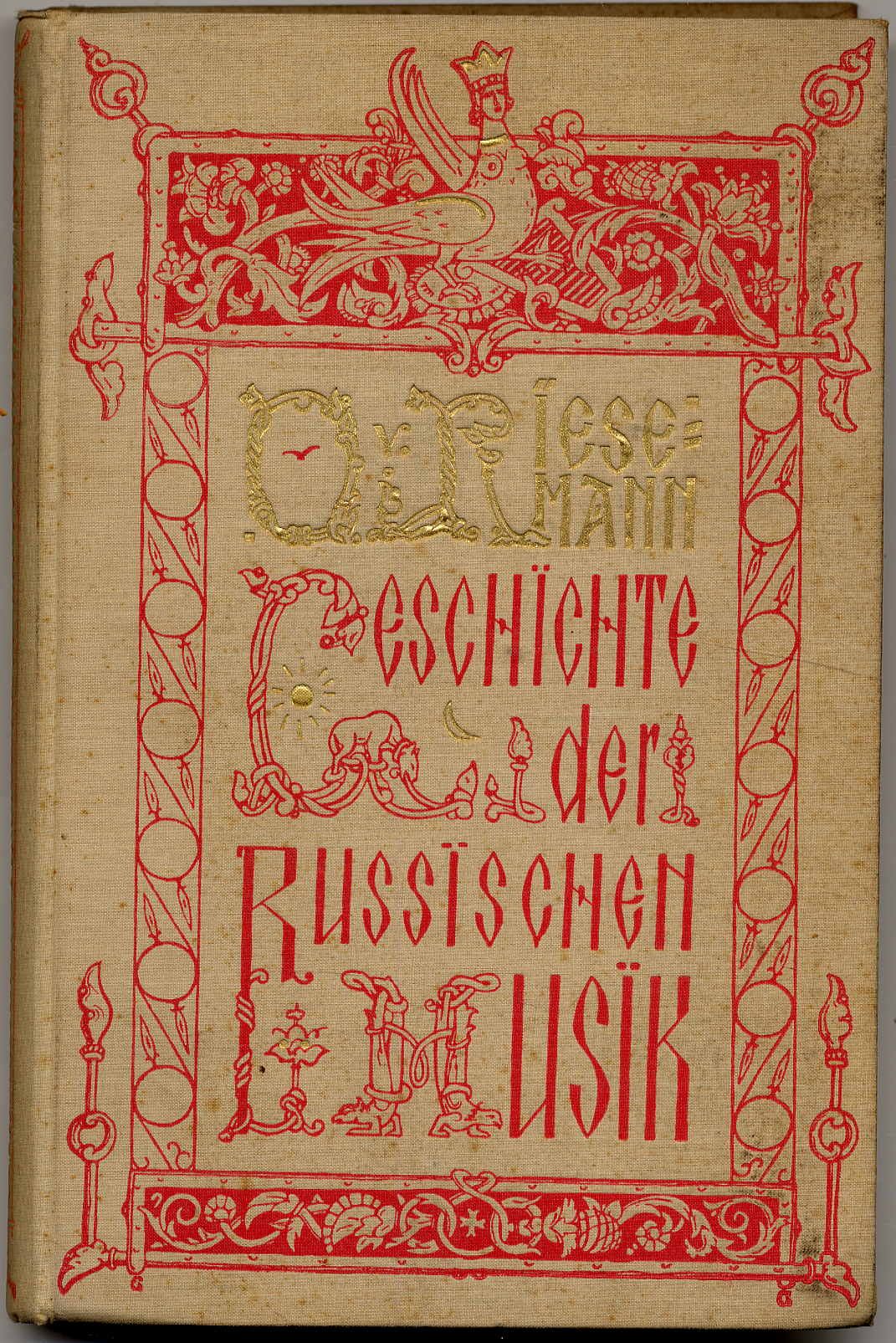 Ssabanejew, L.: Geschichte der russischen Musik. Für deutsche Leser bearbeitet und mit einem Vorwort und einem Nachtrag versehen von Oskar v. Riesemann. Leipzig, Breitkopf & Härtel, 1926. Ca. 22 x 14 cm. 214 S., (2) Seiten. Mit 12 Abbildungen. Orig.-Pappband mit Rot- und Goldprägung. Einband etwas fleckig. Besitzstempel auf Titelblatt.