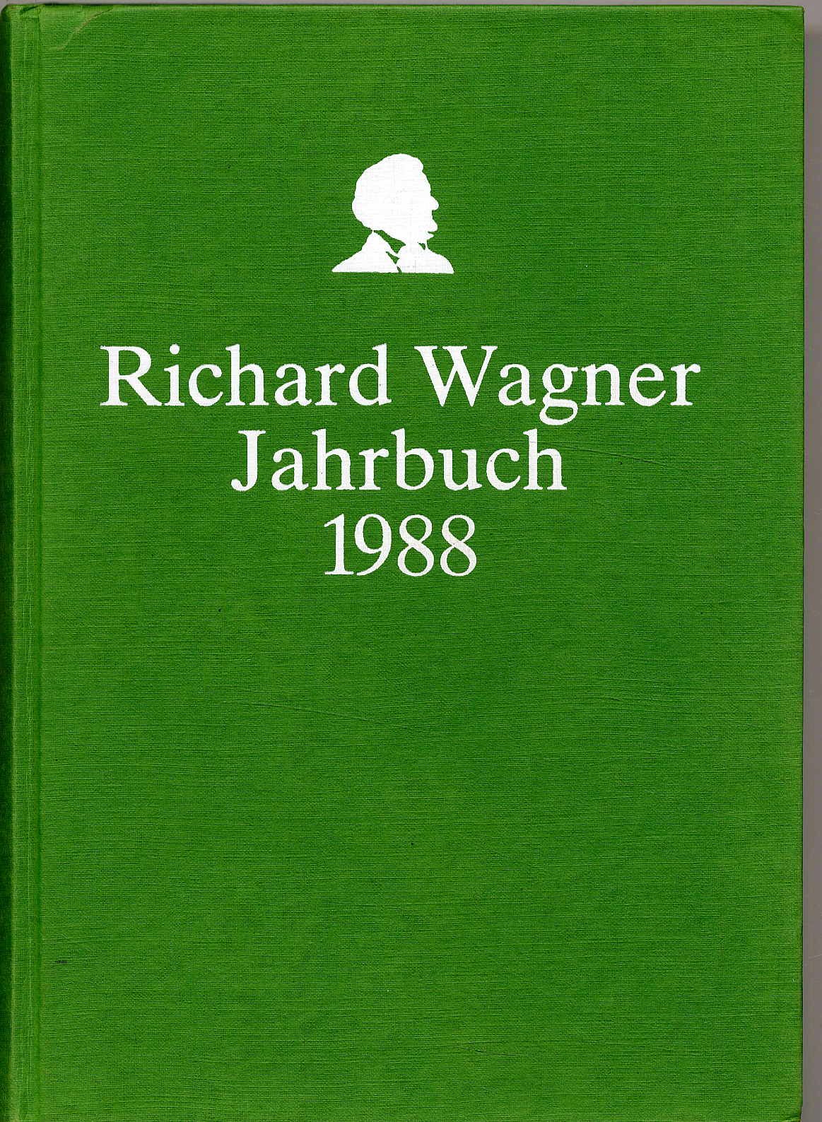 Wagner – Richard Wagner Jahrbuch 1988. (Nachrichtenblatt 1984-1987) Graz, 1988. Ca. 24 x 17 cm. 371 Seiten. Mit Abbildungen und Notenbeispielen. Grüner Orig.-Leinenband. Beigefügt: 2 Fehlerberichtigungszettel mit Entschuldigung der Wagner-Gesellschaft. Im Text wurden die Berichtigungen eingefügt und teils ergänzt. Aus dem Inhalt u.a.: E. Pretorius: Wagner – Bild und Vision; J. Bergeld: Von Tribschen nach Bayreuth; Poduschka/Gruber: Nachruf für Max Kojetinsky; J. Braun: Richard Wagner in Wien.