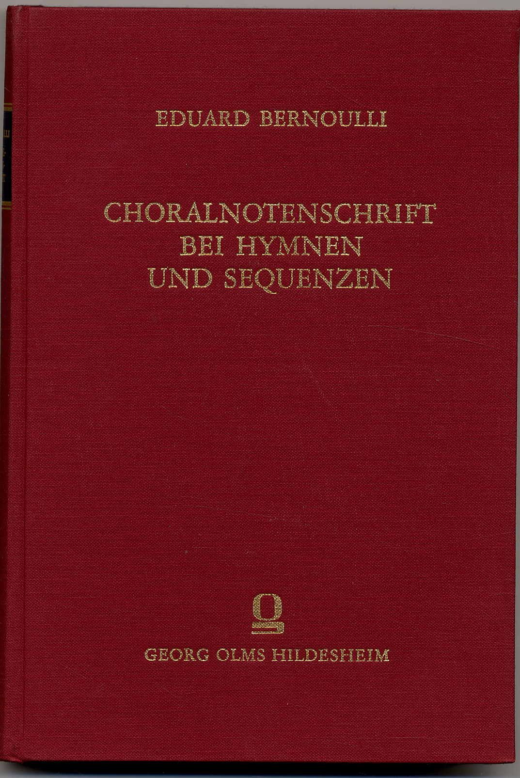 Bernoulli, Eduard: Die Choralnotenschrift bei Hymnen und Sequenzen. Eine Untersuchung der auf Llinie gesetzten Noten als paläographische Vorstudie zur Geschichte des einstimmigen Liedes im späteren Mittelalter. Reprint der Ausgabe Leipzig 1898. Hildesheim, Georg Olms Verlag, 1966. Ca. 23 x 16 cm. X S., (4) S., 241 S., (3) S., 130 Seiten Notenbeilagen, 19 Tafeln (teils in rot und schwarz gedruckt) mit Abbildungen. Roter Orig.-Leinenband. Gutes Exemplar.