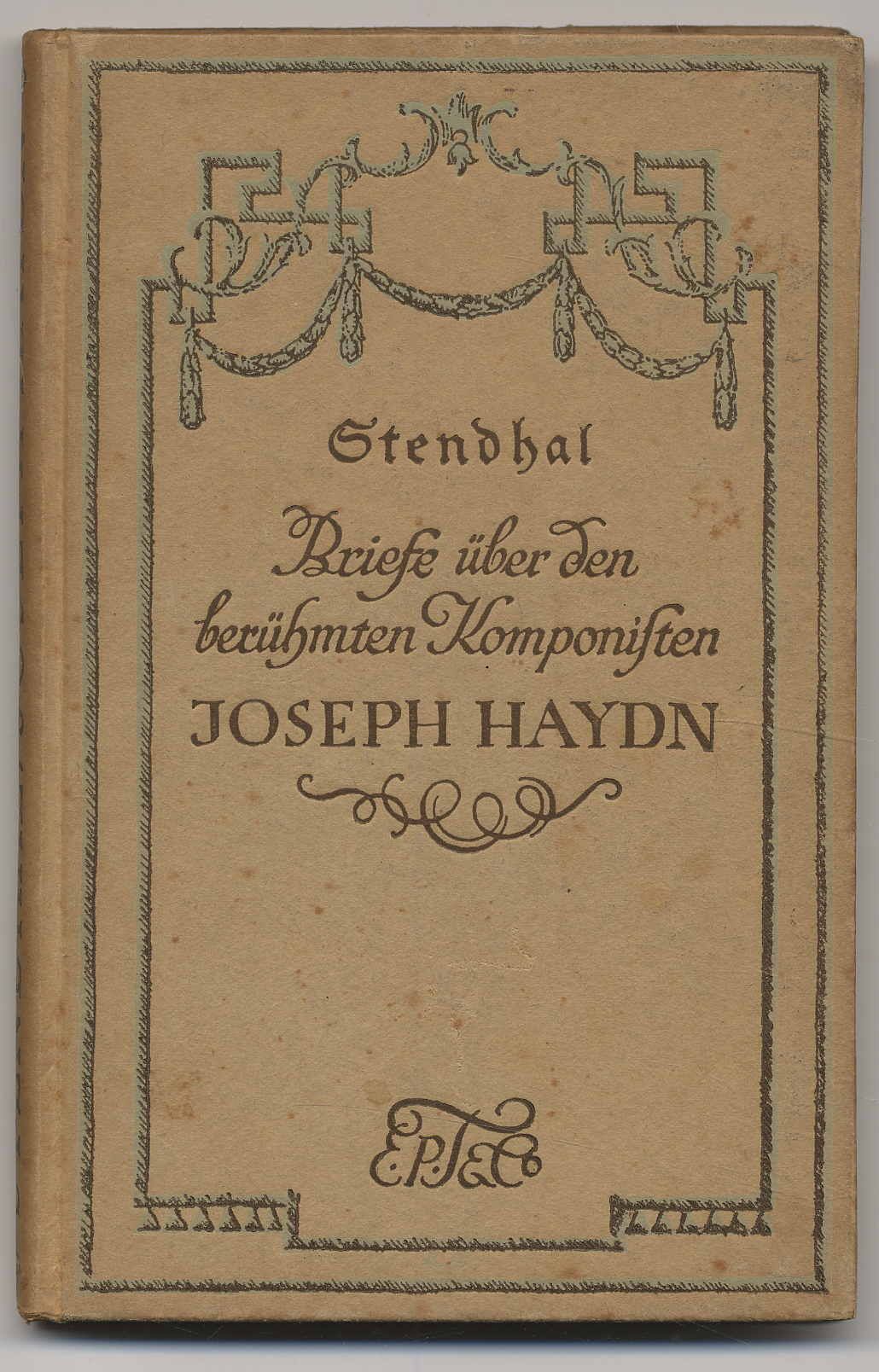 Haydn – Stendhal (Id.i. Henri Beyle): Briefe über den berühmten Komponisten Joseph Haydn. Leipzig u.a., e. P. Tal & Co., 1922. Ca. 16,5 x 12 cm. 164 S., (4) Seiten. Mit Abbildungen auf Tafeln und einigen Notenbeispielen. Illustrierter Orig.-Pappband. Einband und Schnitt etwas stockfleckig. Namenszug auf Vorsatz.