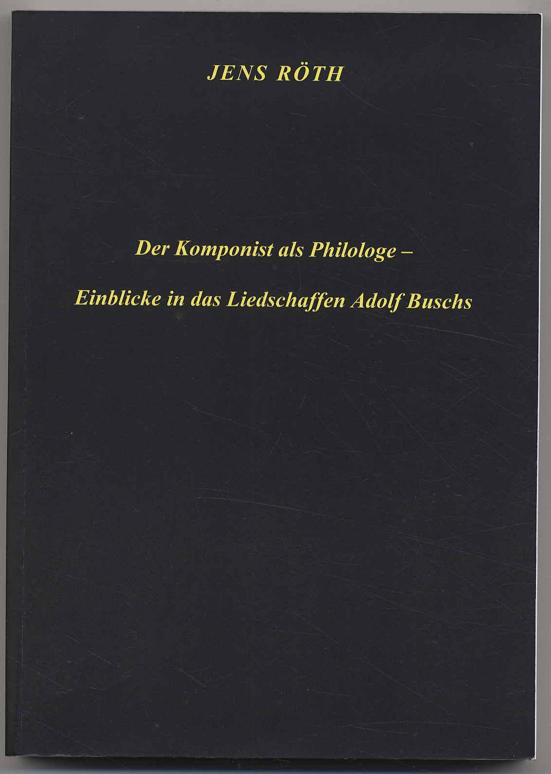 Busch – Röth, Jens: Der Komponist als Philologe – Einblicke in das Liedschaffen Adolf Buschs. Löhnberg, Günter W. Röth Buch- und Musikverlag, 2017. Ca. 24 x 17 cm. X S., 407 Seiten. Mit Notenbeispielen. Schwarzer Originalkartonierter Einband. Gutes Exemplar.