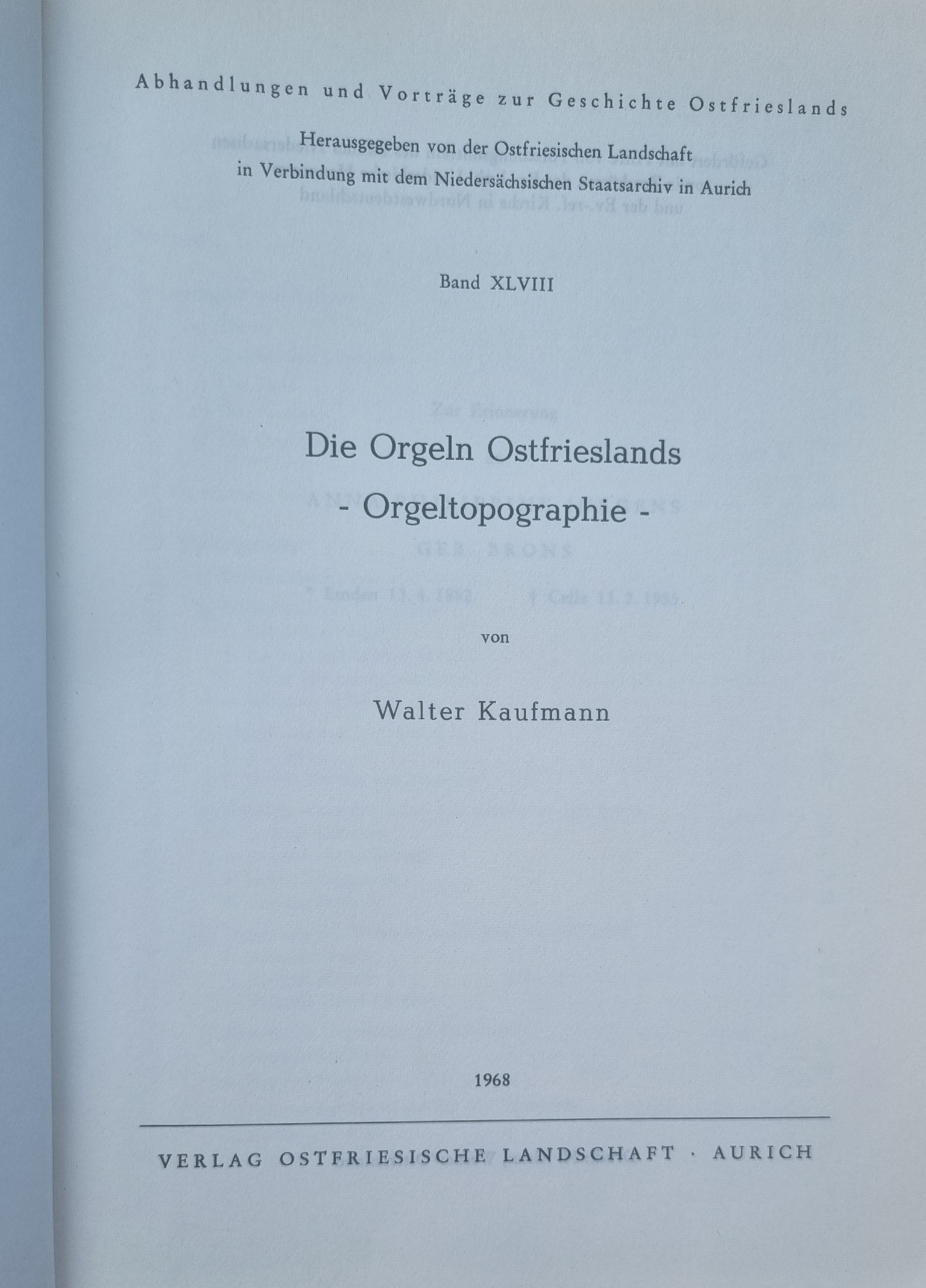 Kaufmann, Die Orgeln Ostfrieslands - Orgeltopographie.