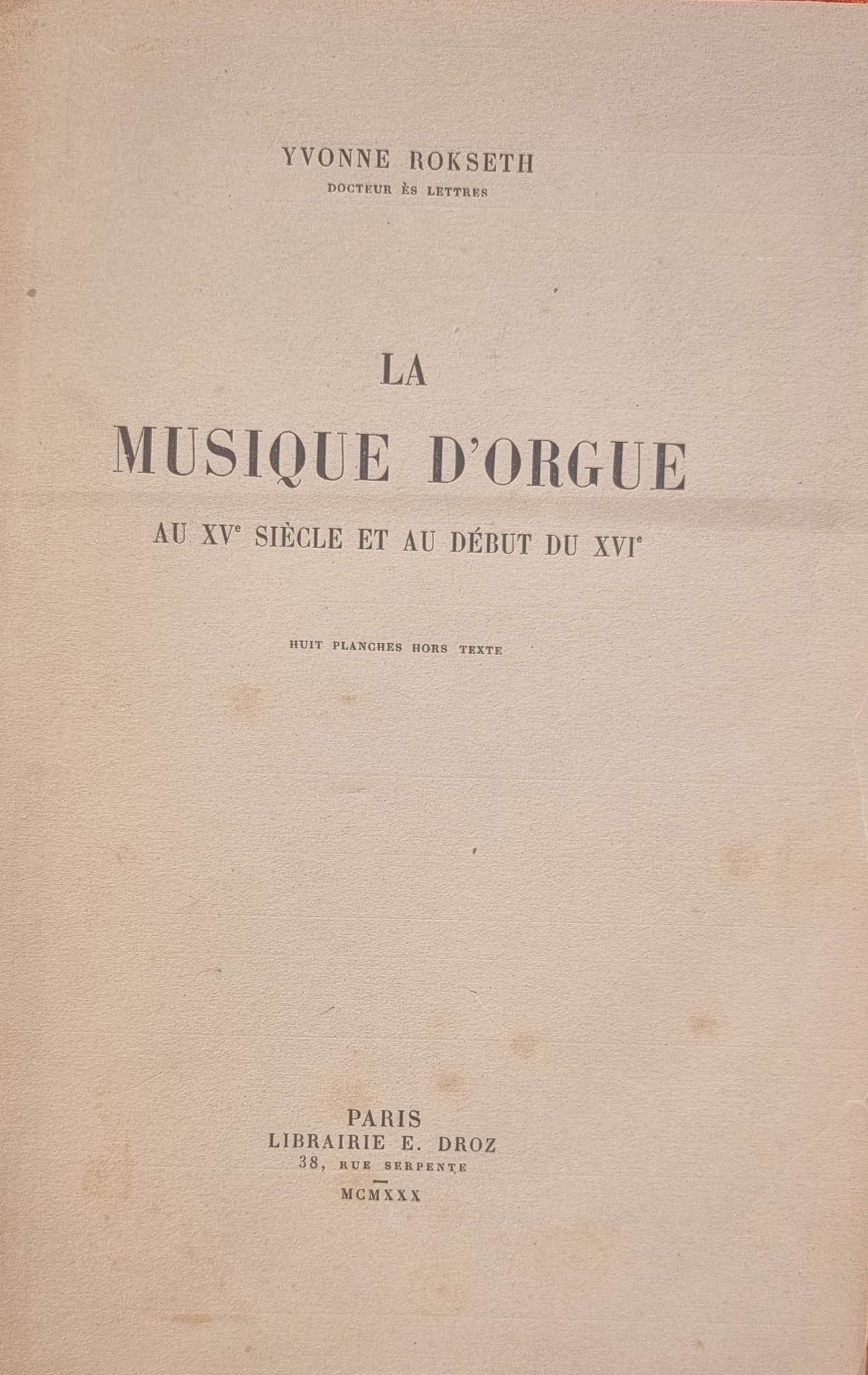 Rokseth, La musique d’orgue au XVe siècle et au début du XVLIe.